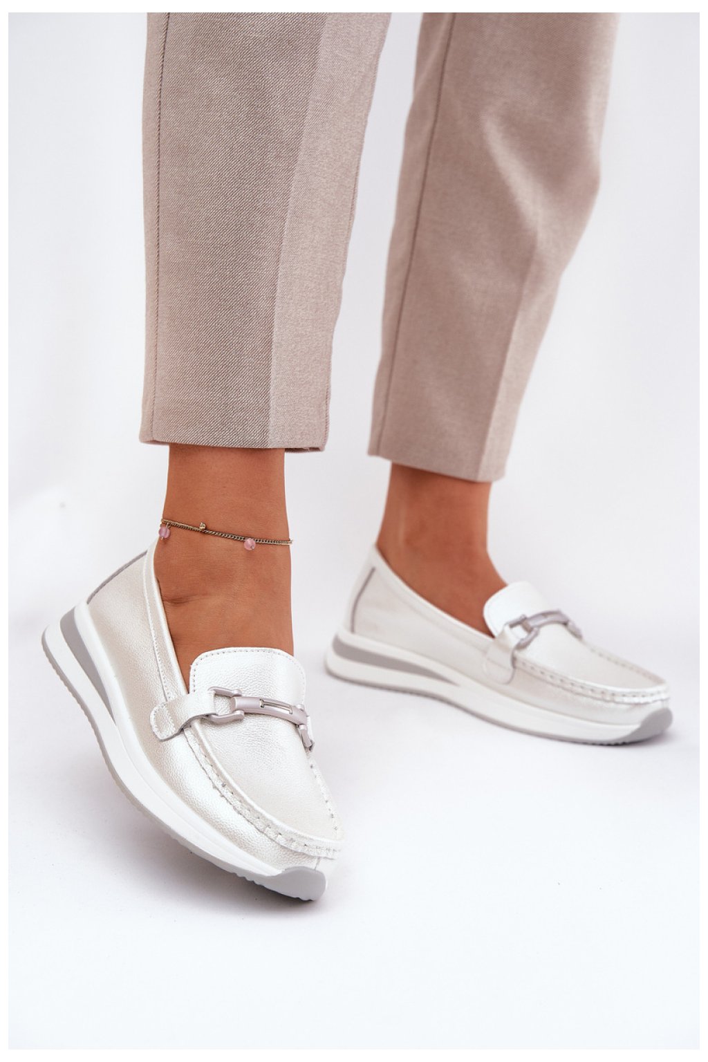 Mokasíny značky S.Barski pro ženy. Vyrobené z přírodní kůže, umístěné na jemné platformě, která kombinuje pohodlí s decentním stylem. Vepředu je ozdobný detail, který dodává výjimečný charakter. Kožená vložka Comfort Shoes zajišťuje pohodlí po celý den s dostatečnou tlumení. Tyto mokasíny budou ideální volbou pro každodenní outfit, spojují elegance s funkčností.