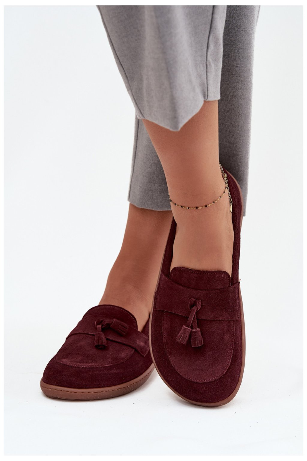 Mokasíny typu barefoot pro ženy jsou nabídkou pro ty, kteří ocení přirozený komfort a volnost pohybu. Vyrobeny z měkkého, přírodního semiše, skvěle se přizpůsobují tvaru nohy, poskytují příjemný pocit lehkosti a pohodlí během nošení. Na přední části je zdobená šňůrkou s dvěma střapci, které dodávají celku decentní šarm a stylový charakter. Jsou to ideální boty na každý den, hodí se jak do volného, každodenního stylu, tak i do elegantnějších outfitů.