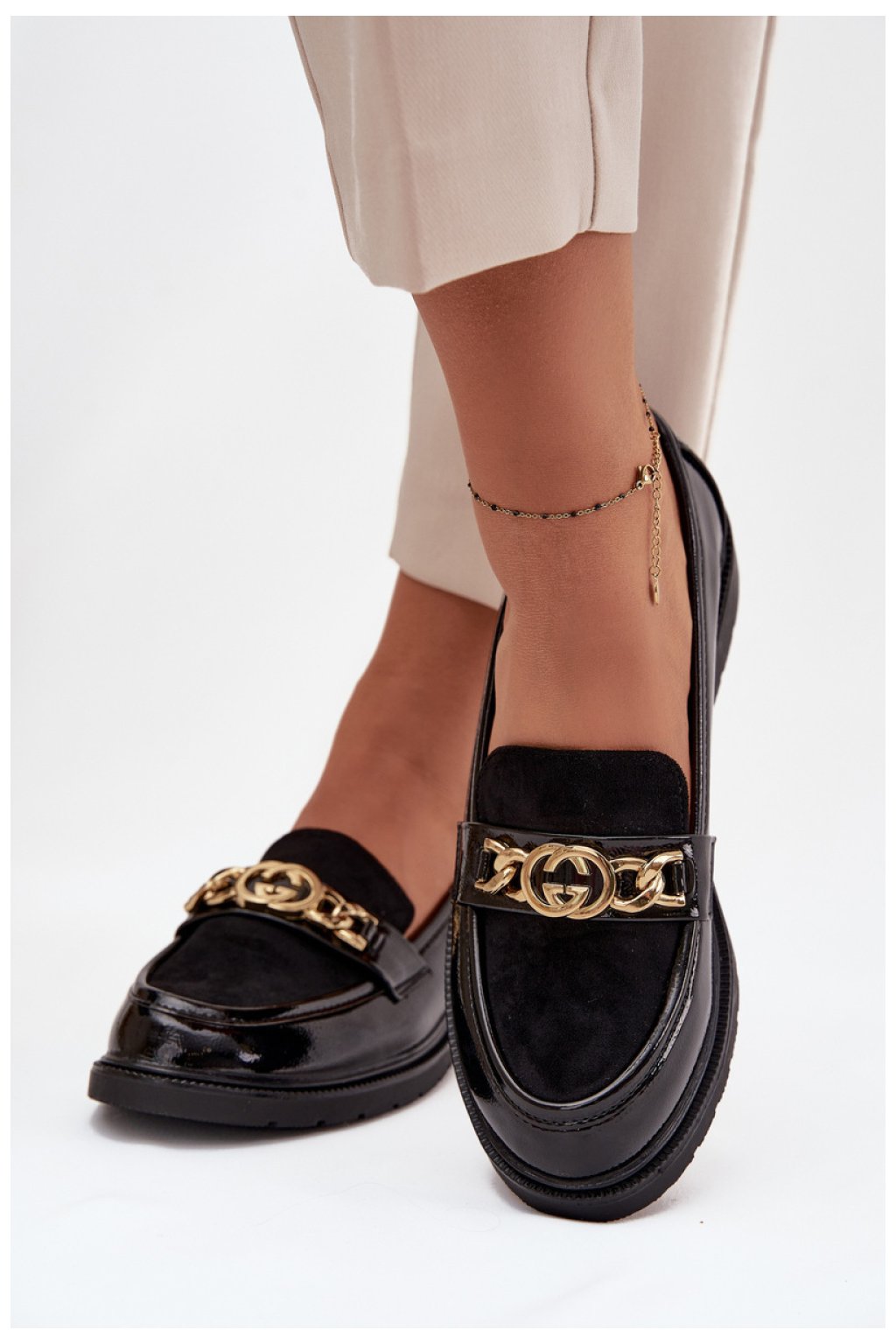 Mokasíny značky S. Barski vyrobené z kombinace eko kůže a eko semiše jsou návrhem pro ženy, které si cení elegance v pohodlném provedení. Klasický střih byl oživen páskem s dekorativní zlatou ozdobou. Díky měkké kůži vložky poskytují pohodlí během celého dne.