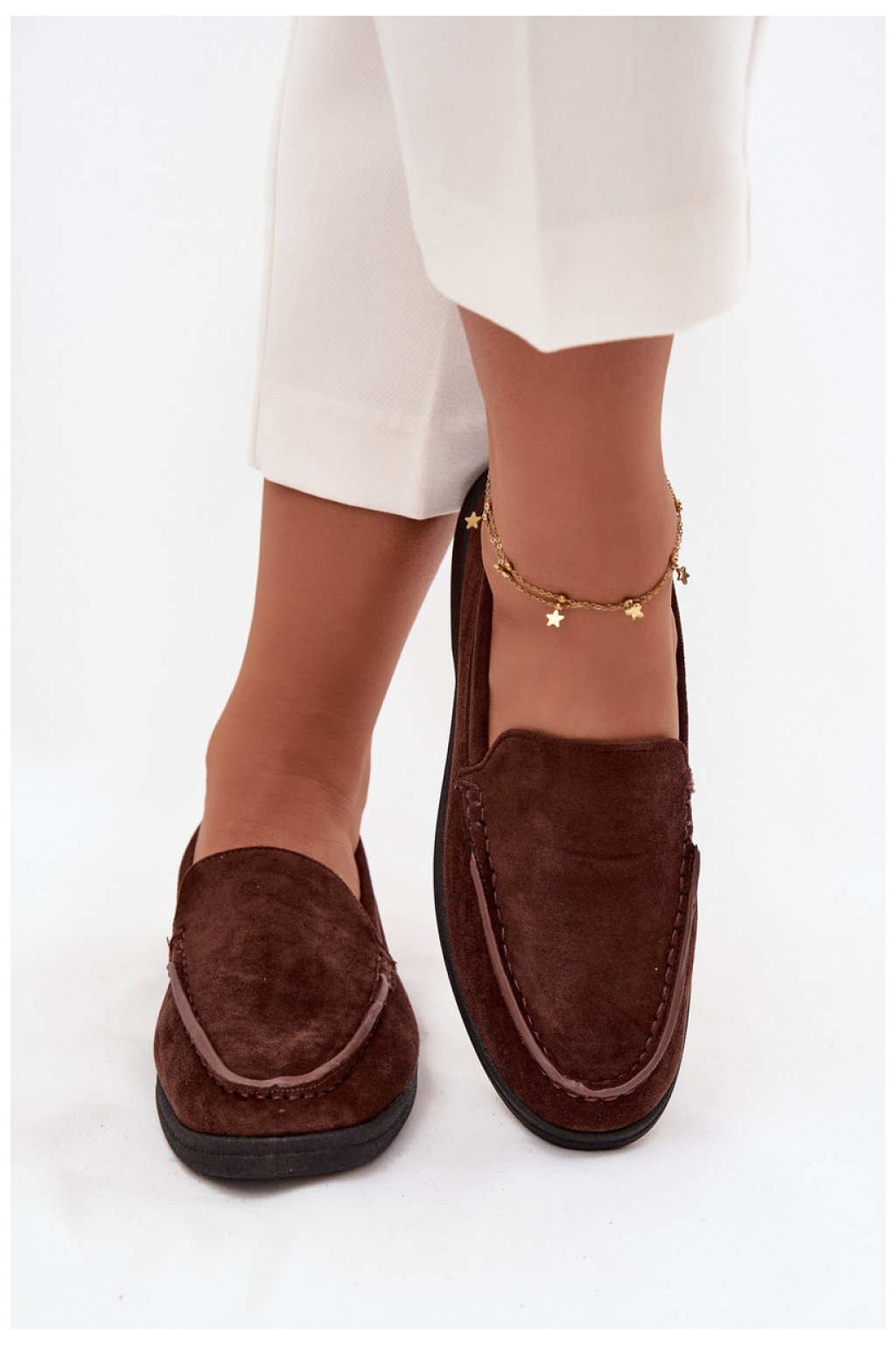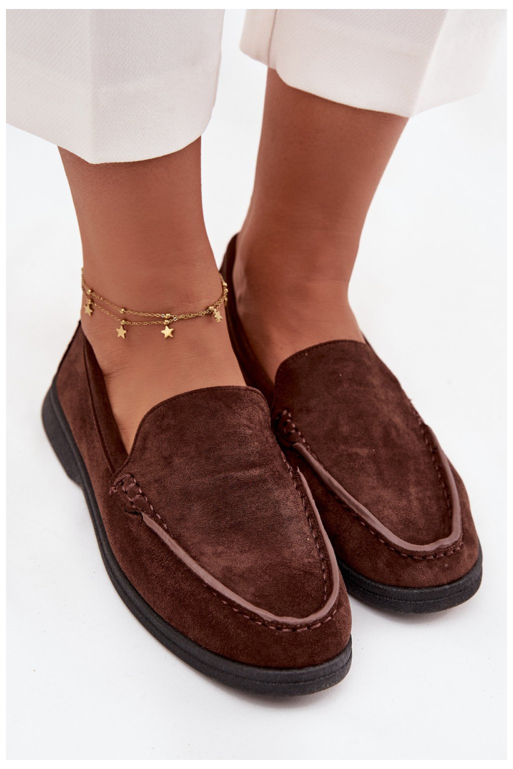 Dámské mokasíny vyrobené z měkkého ekokožešinu jsou stylovým návrhem, který spojuje eleganci s každodenním pohodlím. Klasický, nadčasový střih dělá boty skvěle padnoucí do různých stylizací, od neformálních po elegantnější. Zaoblené špičky dodávají botám jemnost a stélka z eko kůže zajišťuje pohodlí při nošení. Model v moderním čokoládovém odstínu.