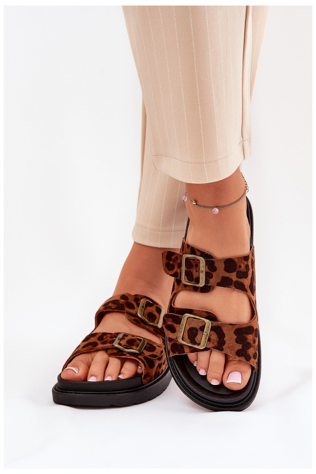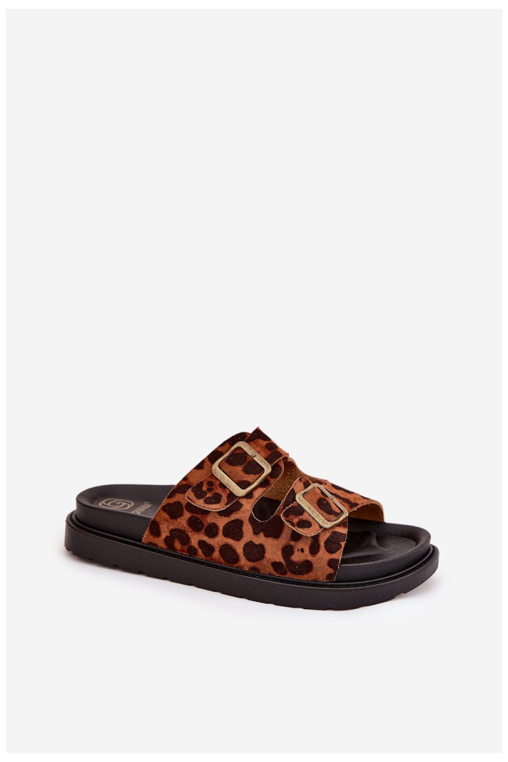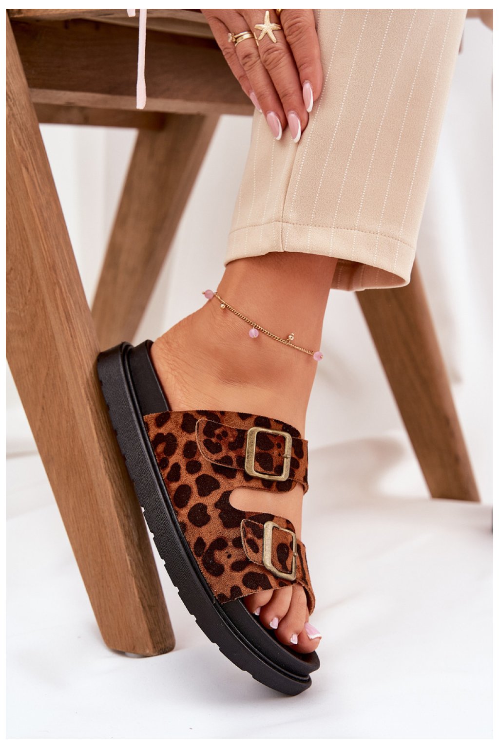 Elegantní pantofle vyrobené z ekologického semiše. Umístěné na platformě, která spojuje pohodlí s módním vzhledem. Pásky s přezkami zajistí ideální přizpůsobení a profilovaná vložka zaručí pohodlí po celý den. Tyto pantofle budou skvělou volbou na letní dny, hodí se jak k šatům, tak k kalhotám.