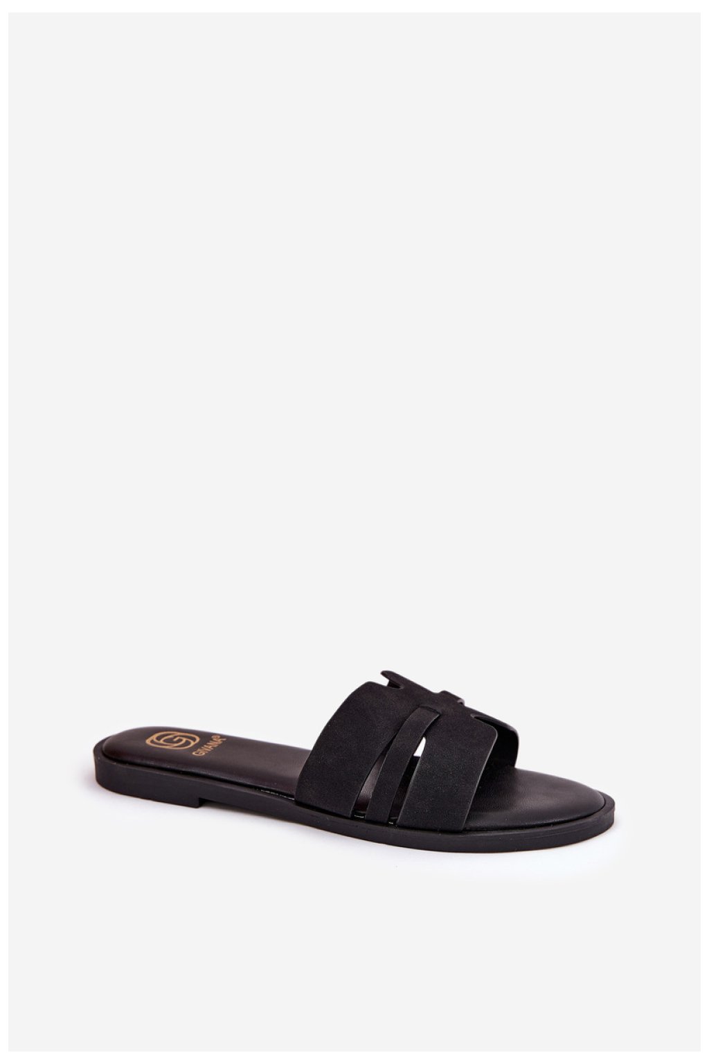 Klasické dámské pantofle vyrobené z ekokožešiny, umístěné na ploché podrážce, které spojují eleganci s pohodlím. Výřezy a decentní pásek dodávají lehkost a moderní charakter. Ideální na každý den, tyto pantofle budou skvělou volbou na teplé dny, skvěle se hodící k šatům, sukním nebo kalhotám, spojující jednoduchost s funkcionalitou.