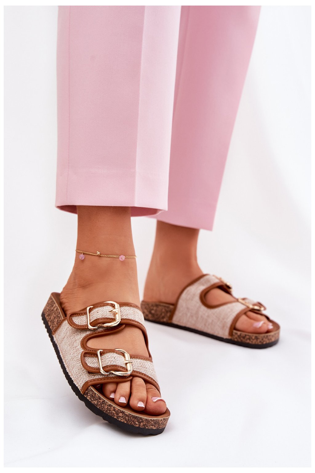Dámské sandály vyrobené z textilního materiálu jsou skvělou volbou na horké dny. Dva pásky s přezkami umožňují snadné přizpůsobení noze, a korková platforma přidává lehkost a moderní vzhled. Tvarovaná stélka zajistí pohodlí po celý den, což z nich činí skvělou volbu na procházky nebo dovolenou. Kombinace pohodlí a stylu v jednom!