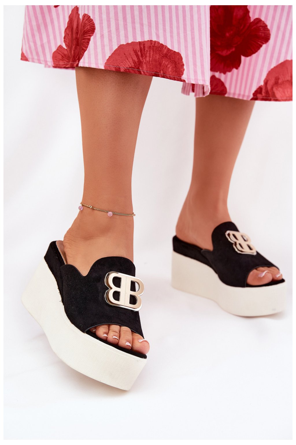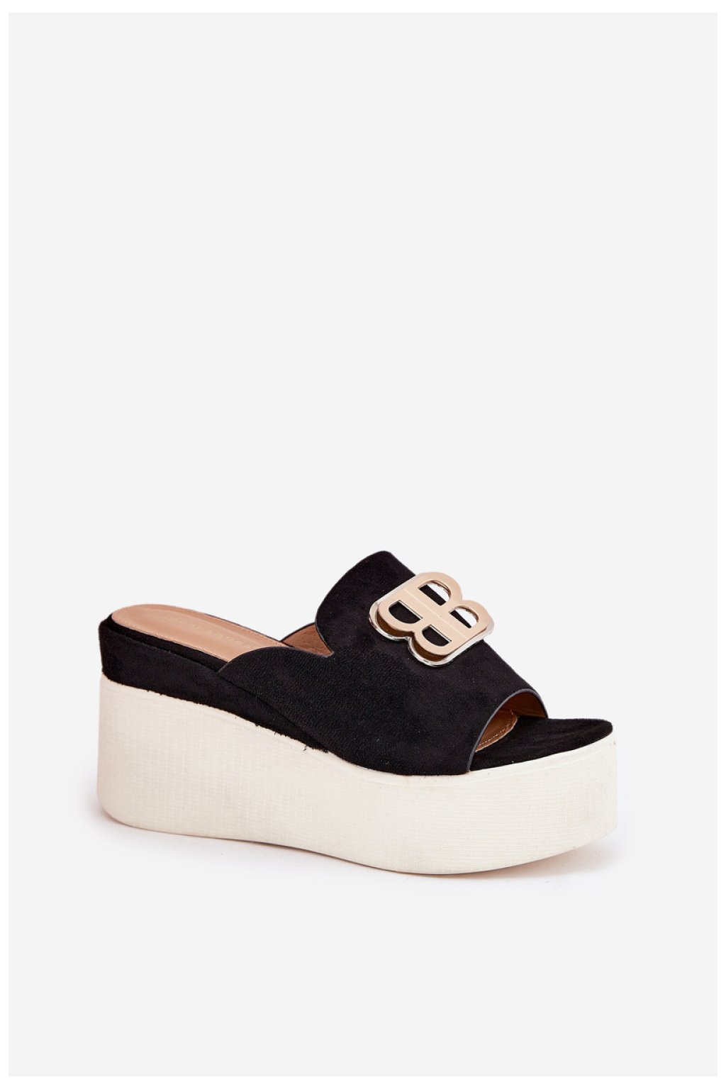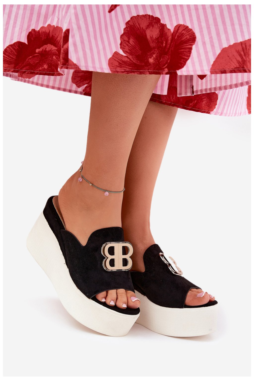 Stylové dámské žabky umístěné na masivní platformě a klínu. Vyrobena z příjemného na dotek ekologického semiše. Měkká stélka je vyrobena z ekologické kůže. Na přední straně ozdoba, která dodává eleganci. Tyto žabky jsou skvělou volbou pro letní horké dny!