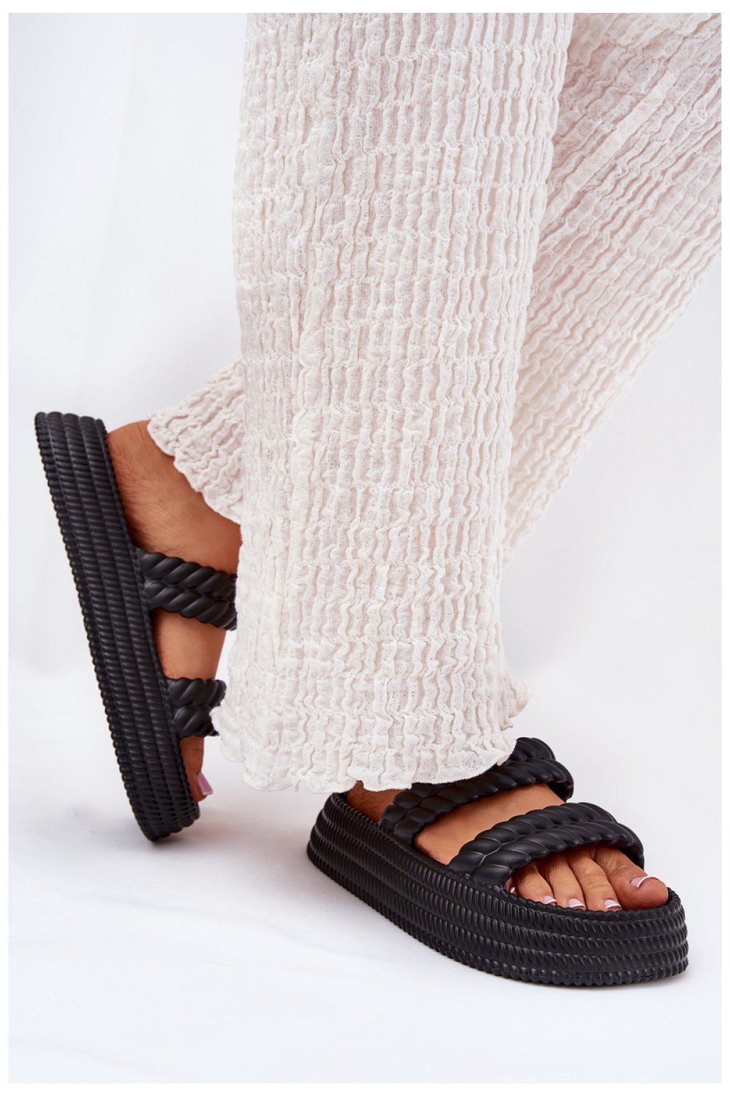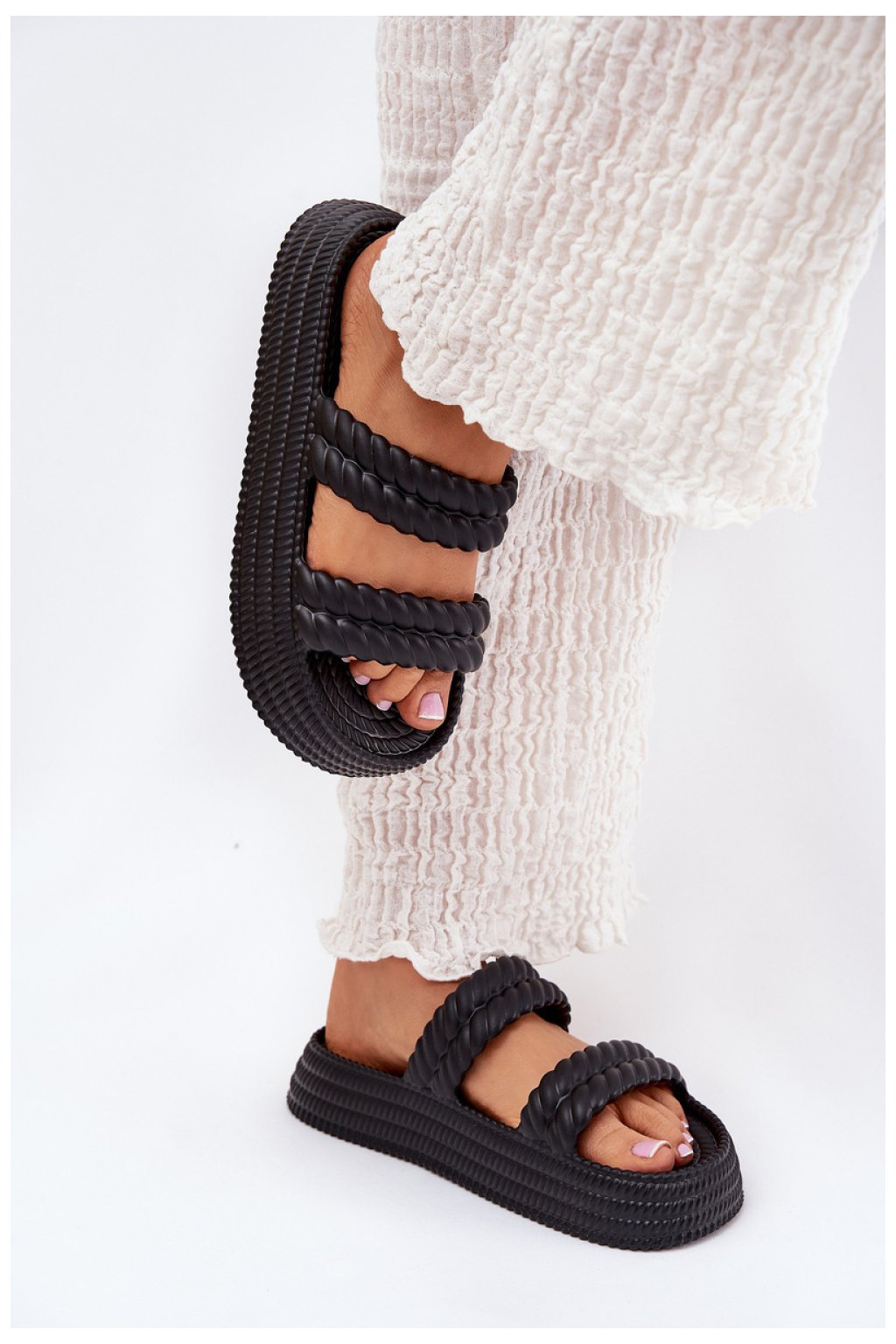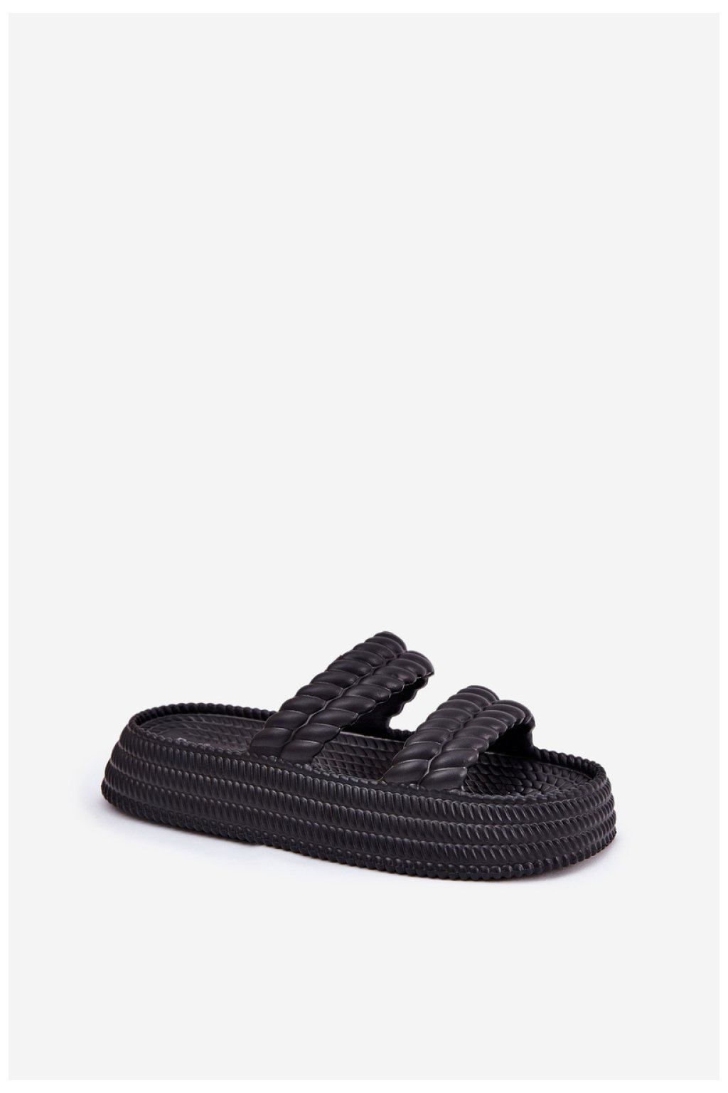 Dámské pantofle vyrobené z lehké pěnové látky, umístěné na platformě, které nabízejí pohodlí po celý den. Dvě popruhy vpředu zajišťují stabilitu a jistotu při chůzi. Ideální na horké dny, tyto pantofle jsou skvělou volbou na dovolenou, čas u bazénu nebo na pláži, spojující funkčnost s pohodlím.