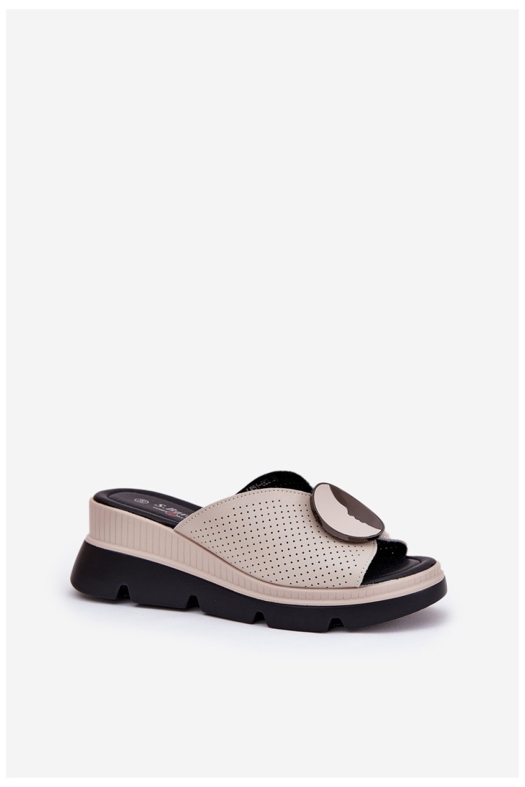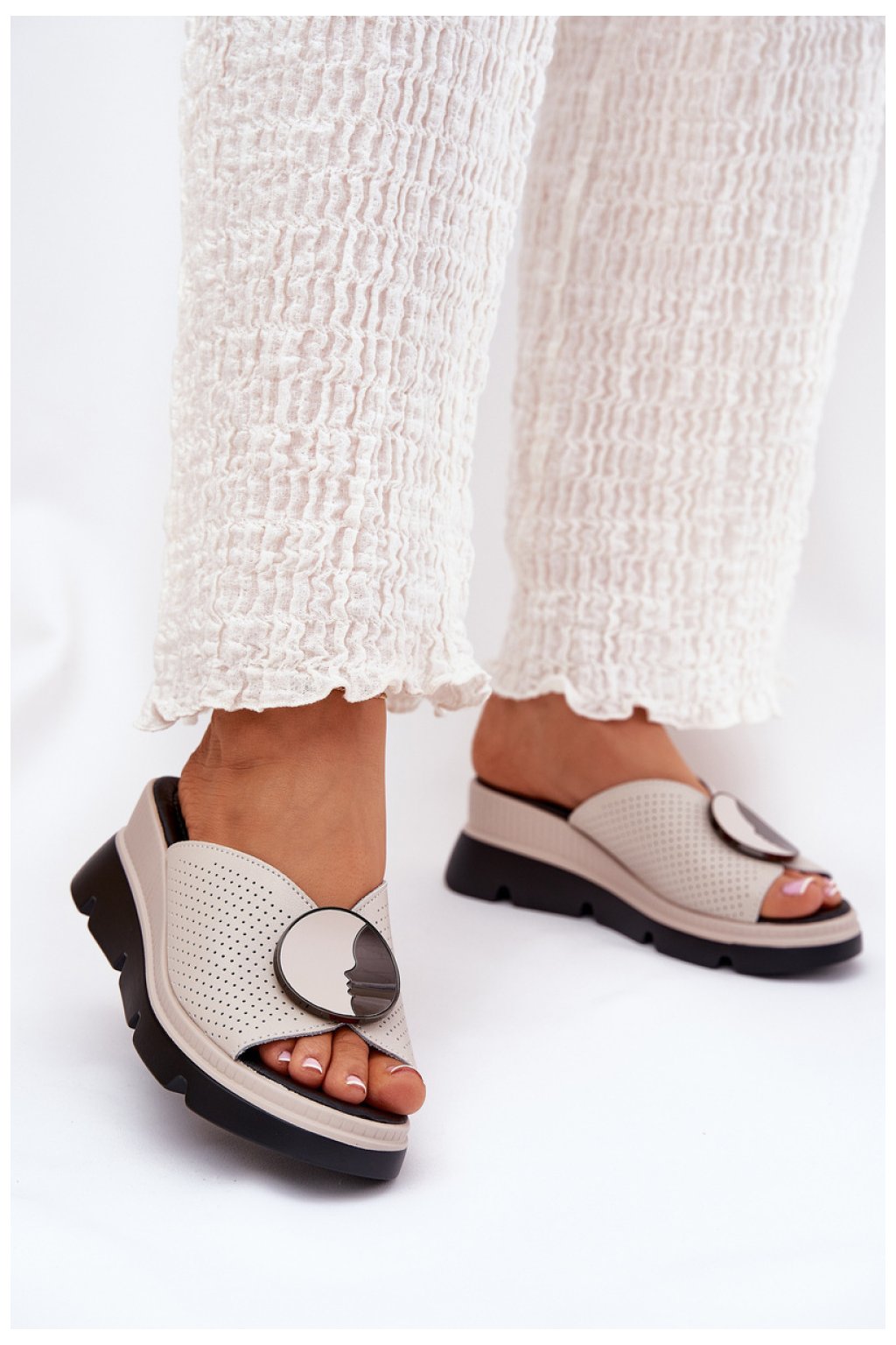 Ženské sandály od značky S.Barski. Vyrobené z přírodní kůže. Umístěné na platformě s klínem. Vyznačují se ozdobným prvkem vpředu. Vložka Comfort zajišťuje pohodlí a skvělou absorpci po celý den. Moderní a elegantní střih, který jistě sladíte s mnoha stylizacemi!