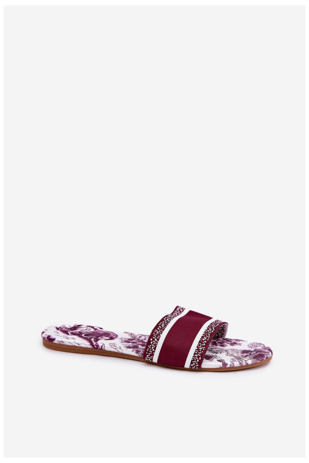 Ploché dámské pantofle vyrobené z textilního materiálu, které se vyznačují unikátním vzorem, dodávajícím jim jedinečný charakter. Tyto pantofle jsou ideální na teplé dny, skvěle ladí s letními šaty, sukněmi nebo kraťasy, přinášejí do každodenních outfitů lehkost, barvu a módní akcent. Ideální jak na pláž, tak na procházky po městě.