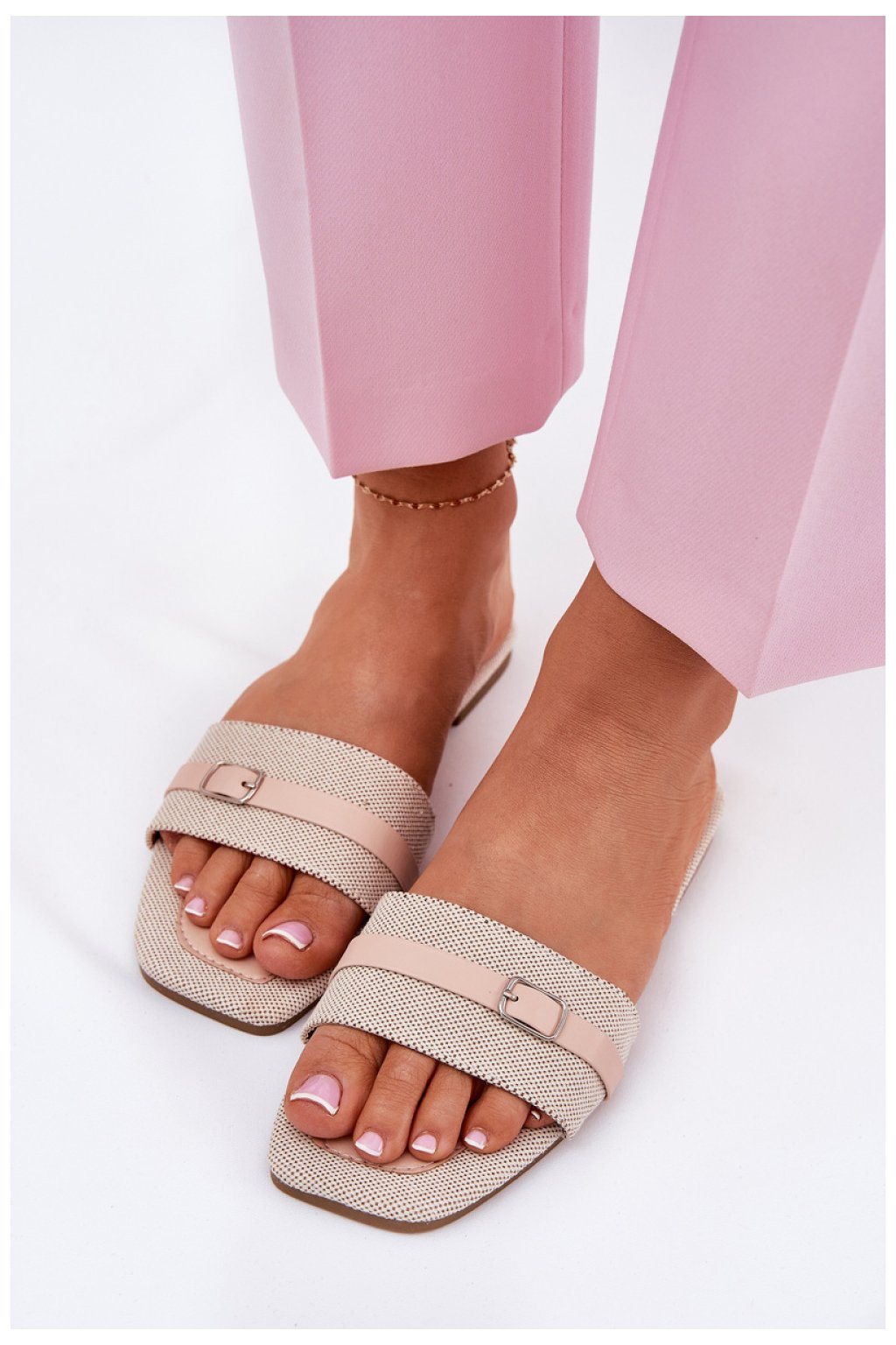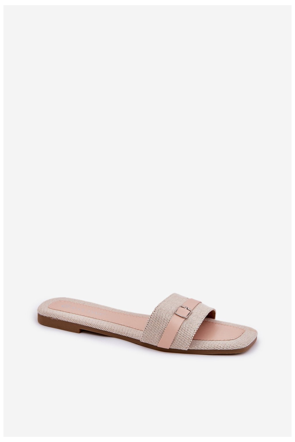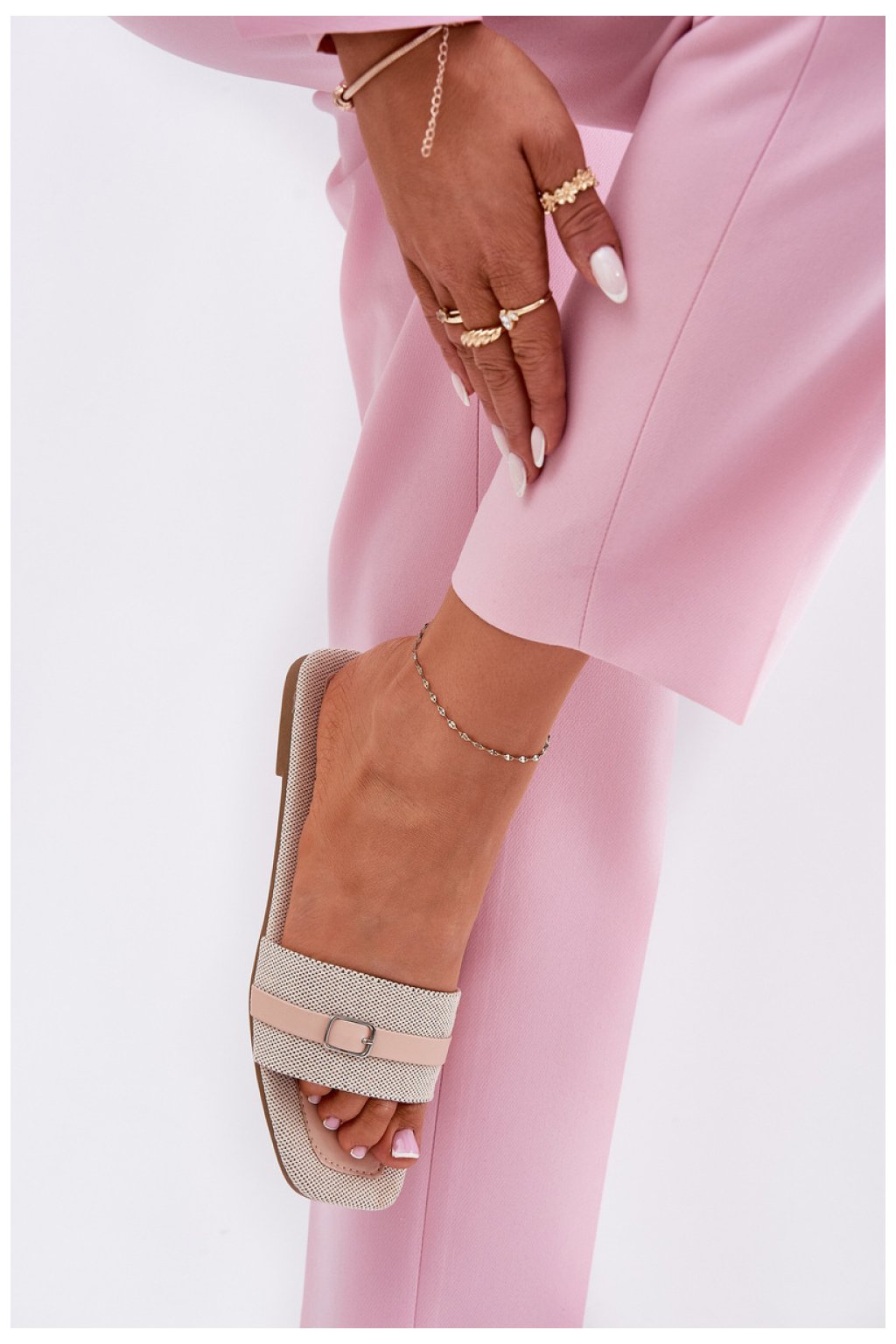 Ploché dámské sandály z textilního materiálu, které spojují pohodlí s decentním stylem. Na přední straně zdobené tenkým páskem s přezkou. Ideální na teplé dny, tyto sandály skvěle ladí s letními vzdušnými šaty a látkovými kalhotami.
