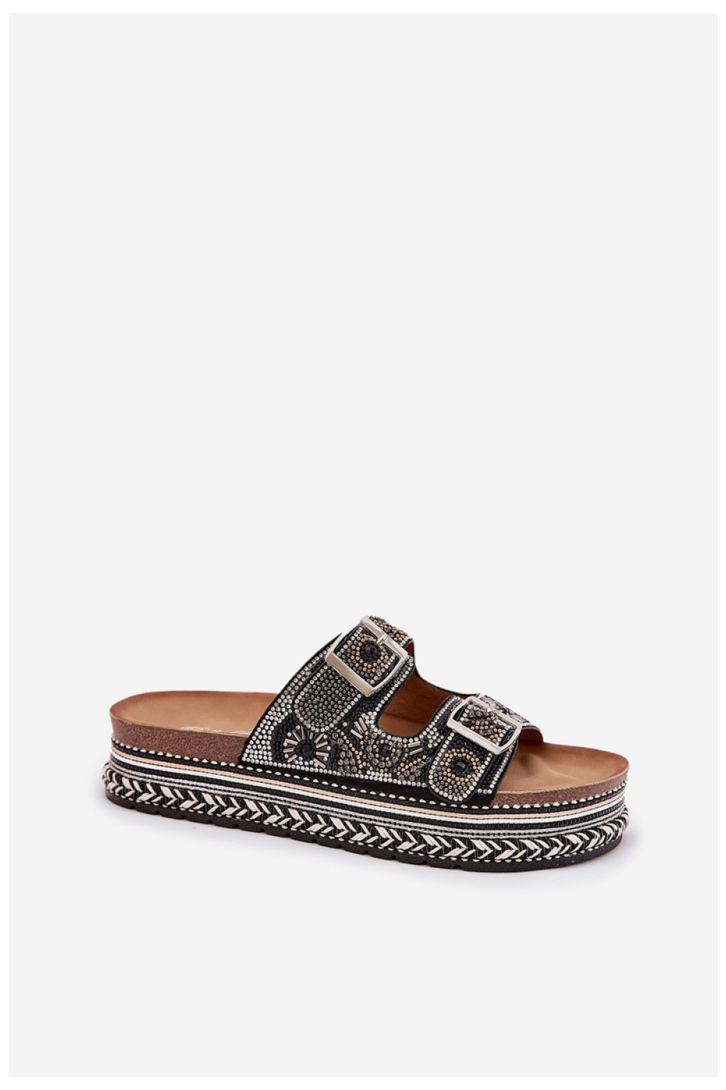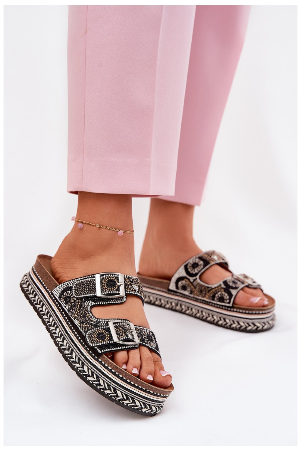 Stylové dámské sandály na platformě s atraktivním zdobením. Mají popruhy s přezkami, které jim dodávají moderní charakter. Ideální na letní dny, skvěle ladí s šaty a kalhoty, zdůrazňují každý outfit.