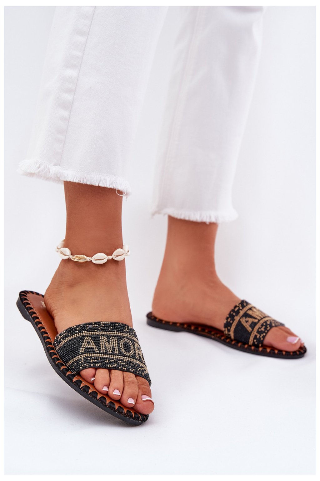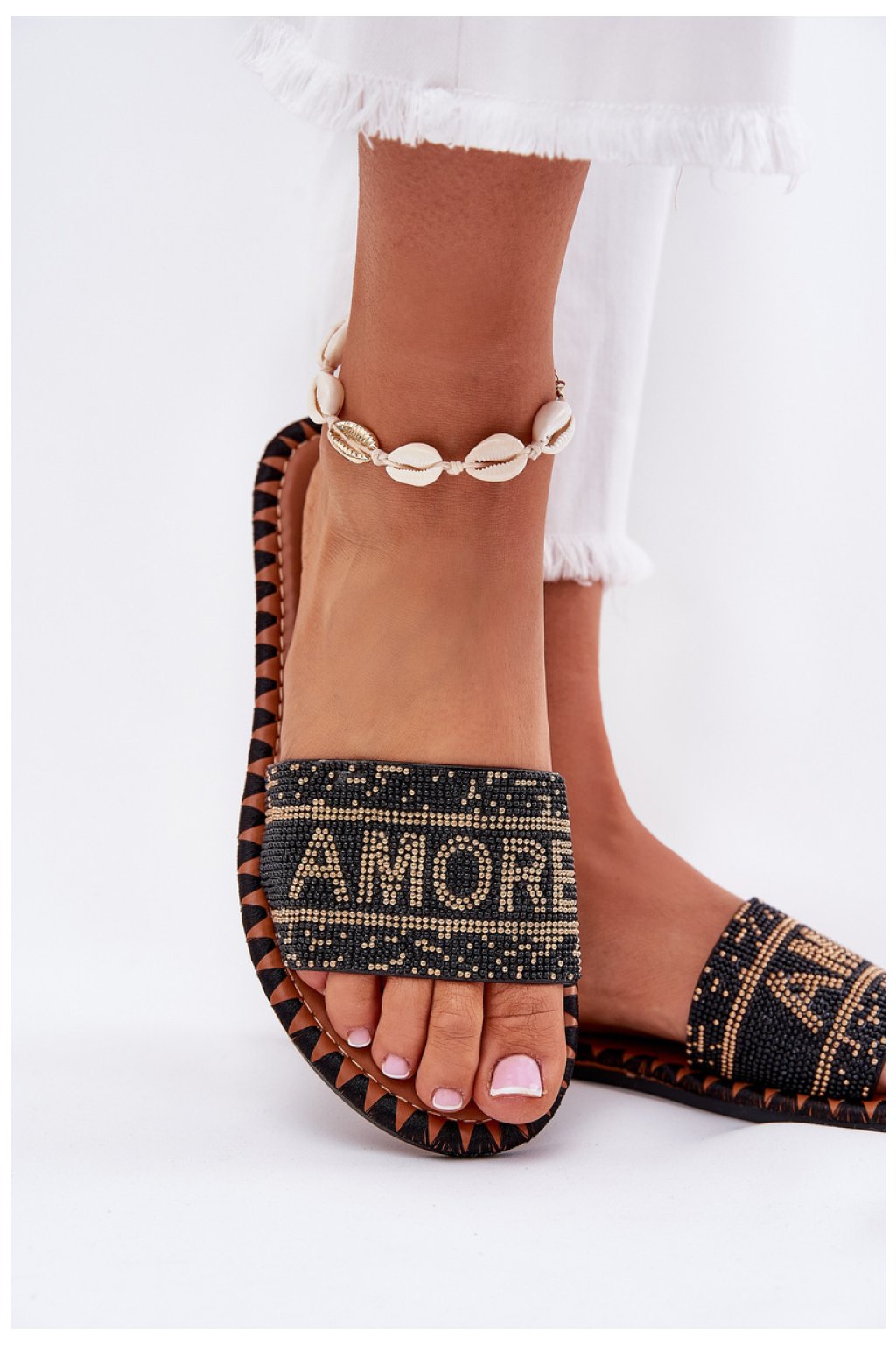 Dámské pantofle na ploché podrážce jsou skvělou volbou pro horké dny! Tento model má zdobený pásek a efektní nápis Amore, který jim dodává zvláštní charakter. Skvěle ladí s různými stylizacemi, tvoří univerzální kousek šatníku. Určitě si je musíš pořídit!