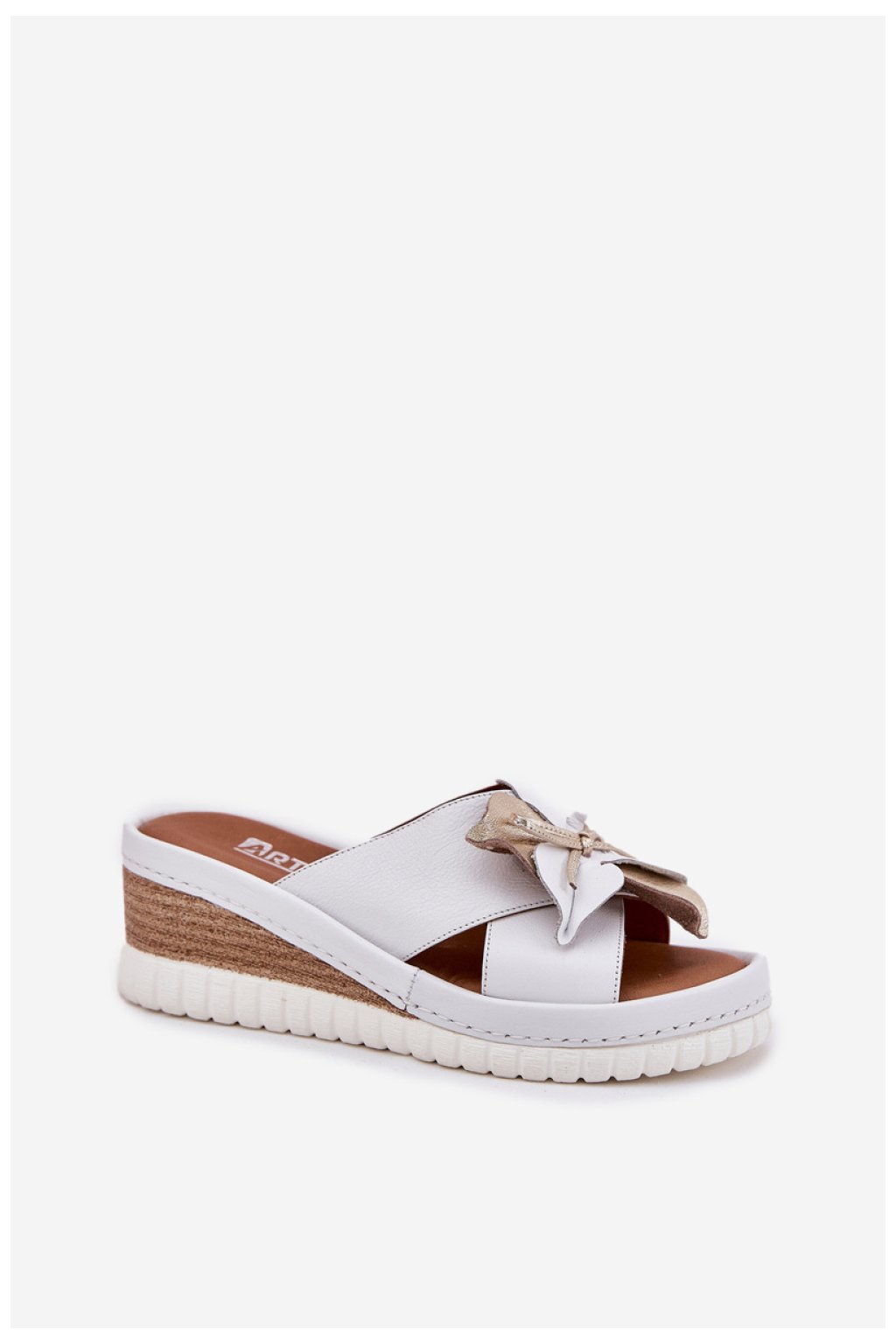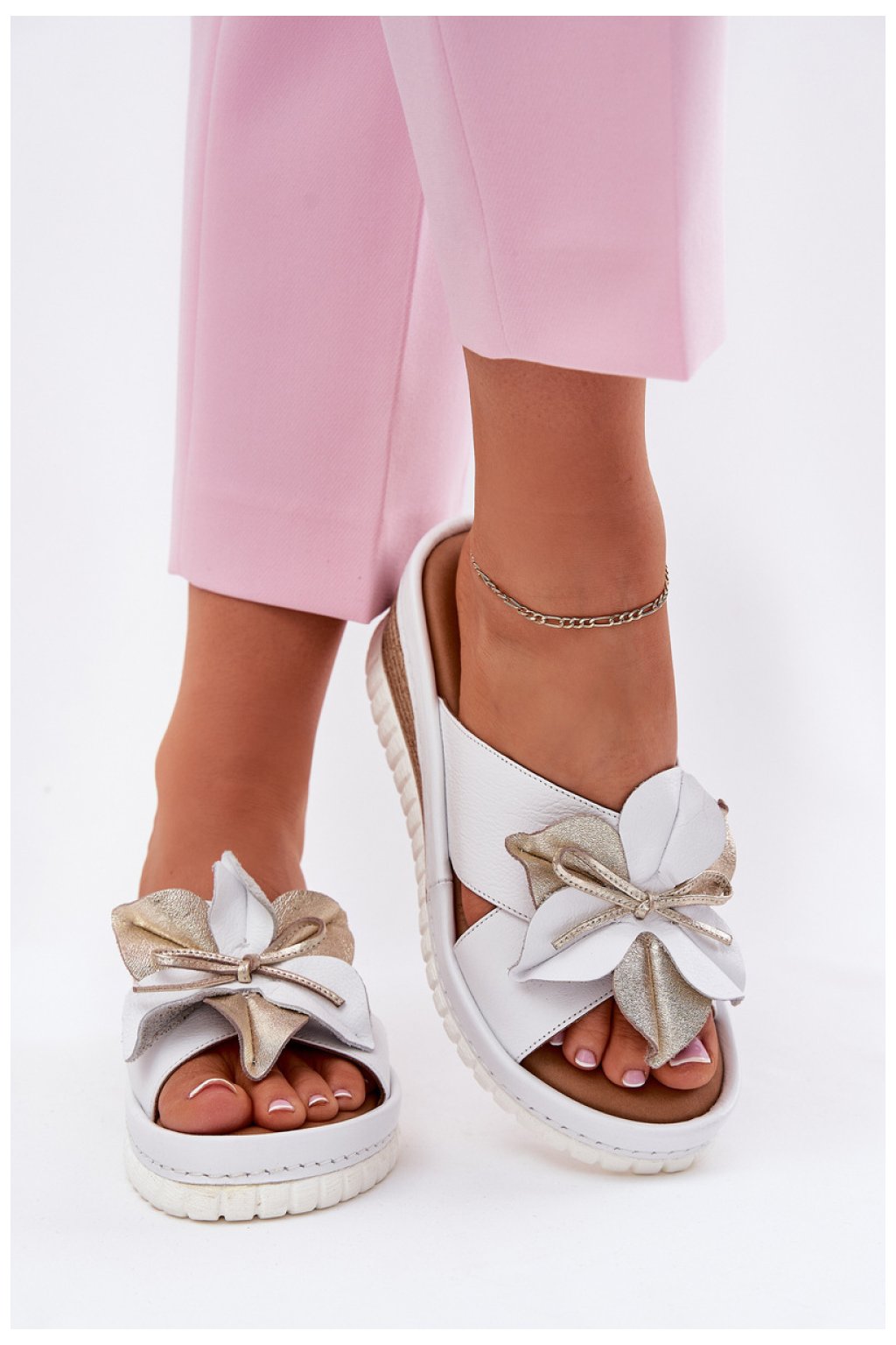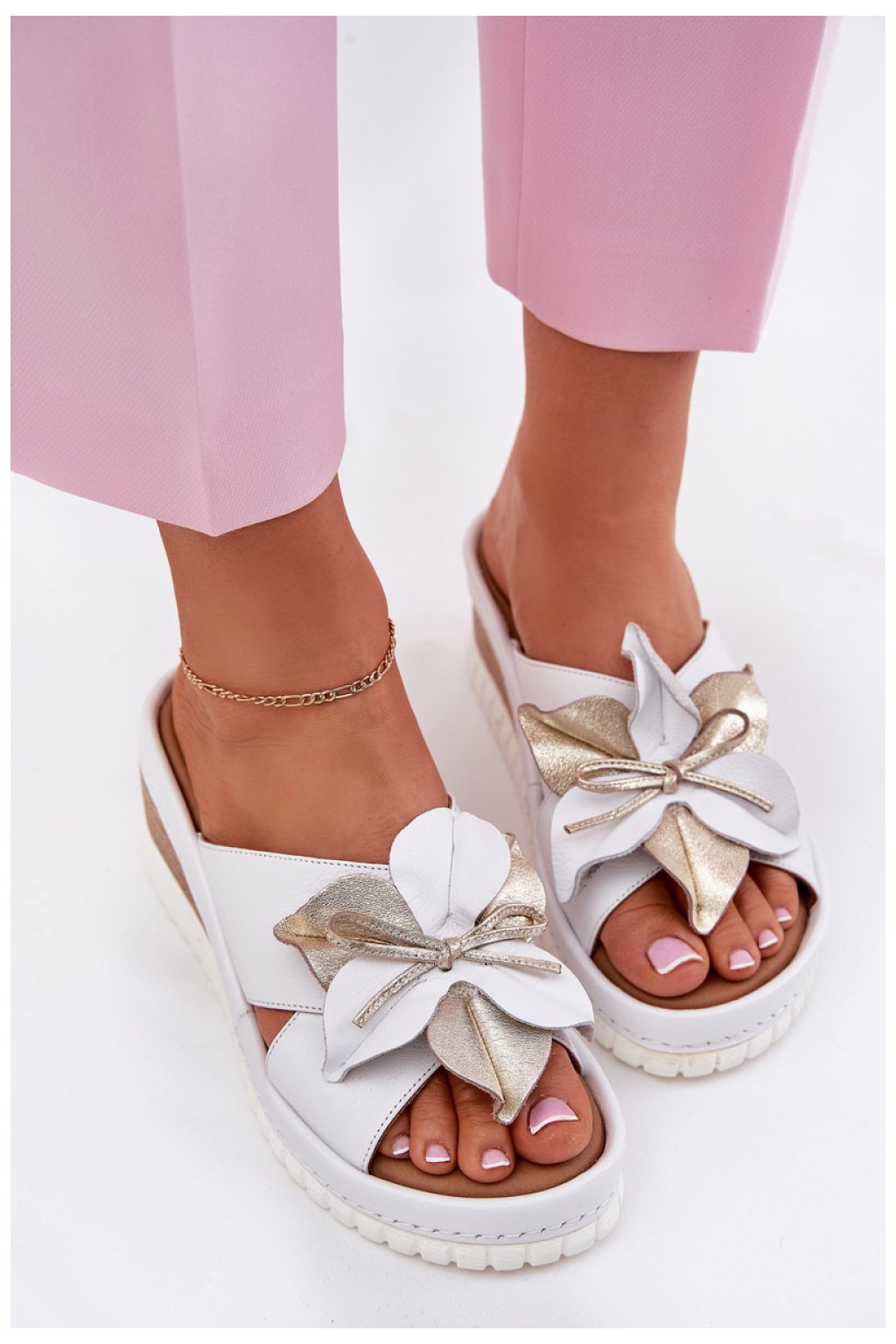 Dámské sandály vyrobené z vysoké kvality přírodní kůže. Umístěné na podpatku. Na přední části boty se nachází decentní ozdobný kvítek, který dodává výjimečný charakter. Velmi měkká stélka zajišťuje pohodlí po celý den a dělá tyto sandály ideální volbou pro letní stylizace, kombinující funkčnost s módním vzhledem.