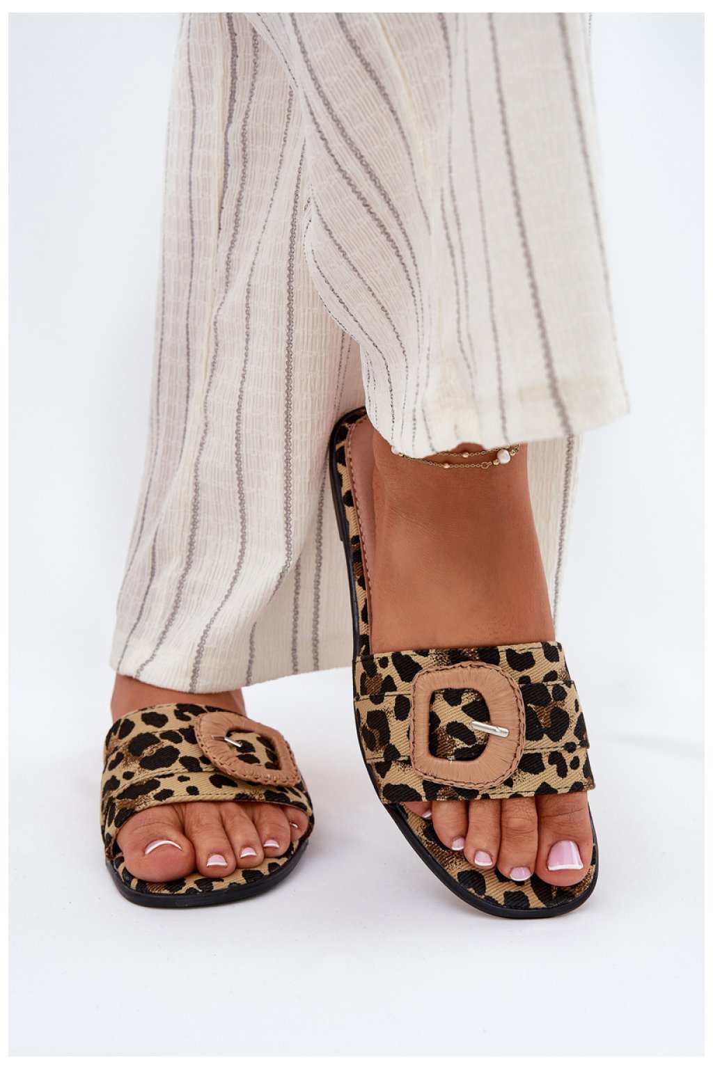 Dámské sandály na ploché podrážce vyrobené z textilního materiálu. Na přední straně je zdobená spona, která dodává styl a eleganci. Jsou to skvělá volba na letní dny, lehké, pohodlné a moderní, skvěle se hodí na každý den.