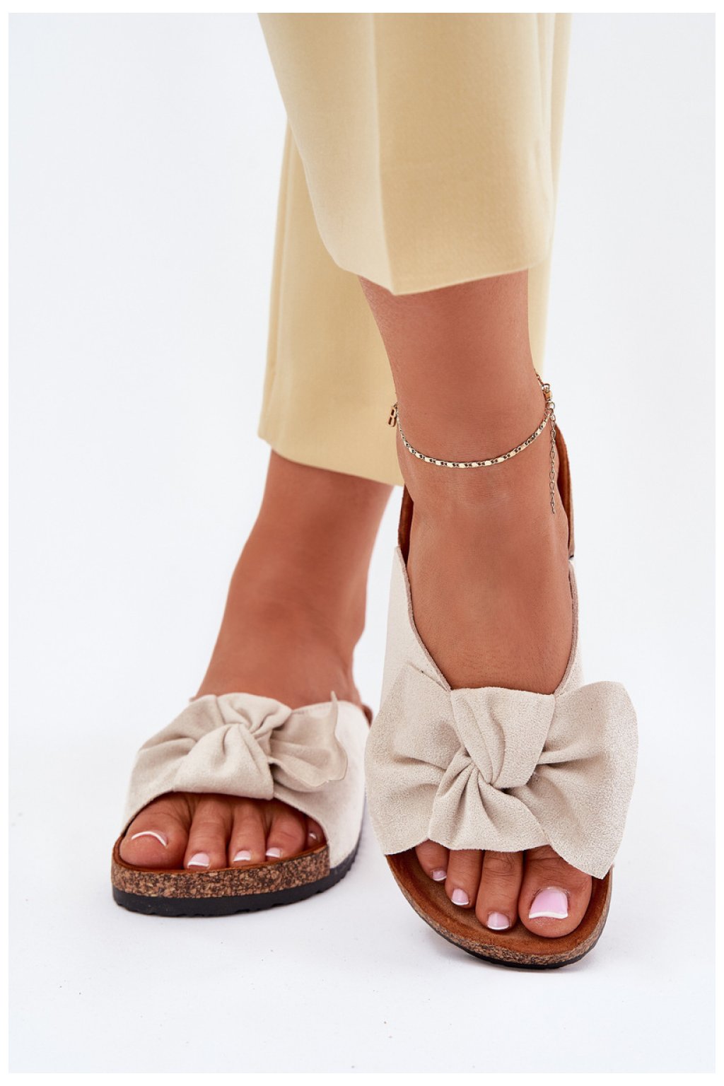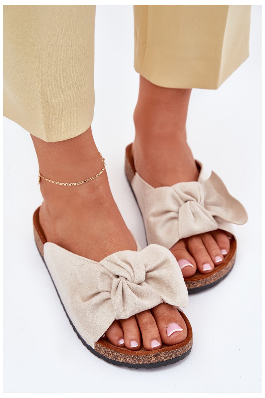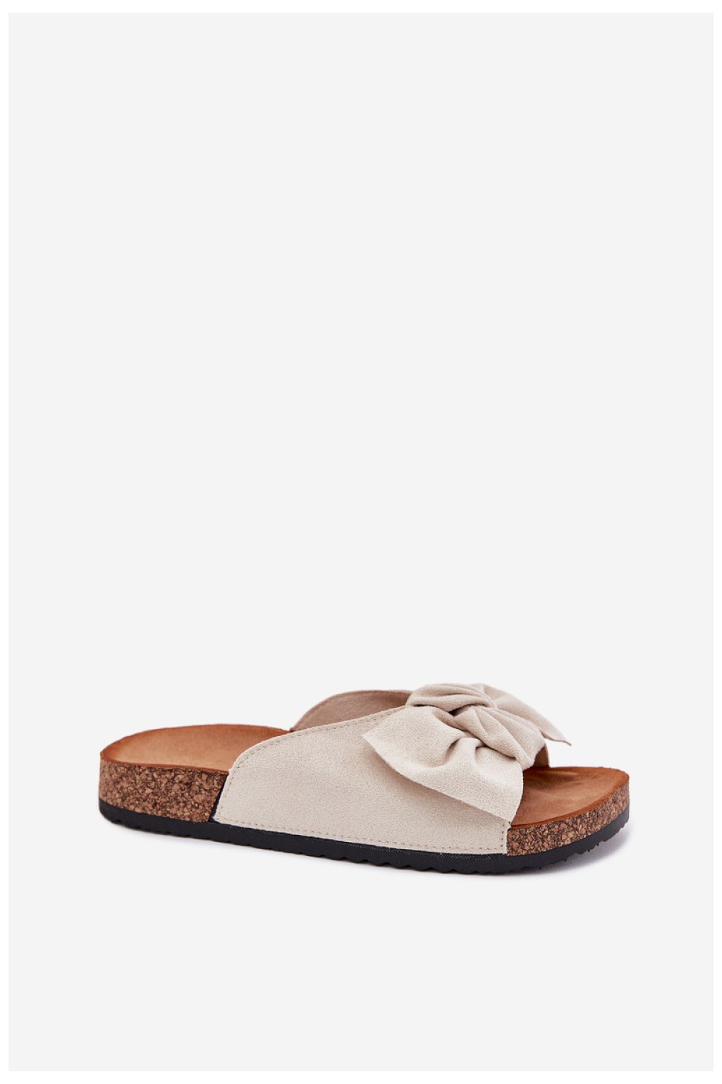 Dámské sandály z ekokože na korkové podešvi jsou ideální volbou na teplé dny. Pohodlná, tvarovaná stélka zajišťuje pohodlí po celý den a mašlička vpředu dodává šarm. Klasický střih, který se skvěle hodí do každodenních stylizací.