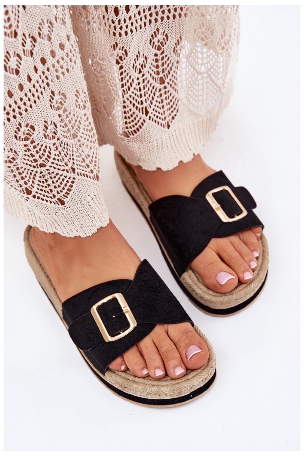 Dámské sandály vyrobené z ekokožešiny jsou ideální volbou na teplé dny. Přední část sandálů má nastavitelný popruh s elegantní zlatou přezkou, což umožňuje ideální přizpůsobení noze. Umístěné na platformě poskytují dodatečnou výšku a pohodlí při nošení, aniž by se vzdaly pohodlí. Ozdobené imitací pleteniny, která jim dodává lehkost a charakter. Tyto sandály skvěle ladí s letními šaty, kraťasy nebo šortkami, vytvářejí módní a ležérní vzhled na každý den.