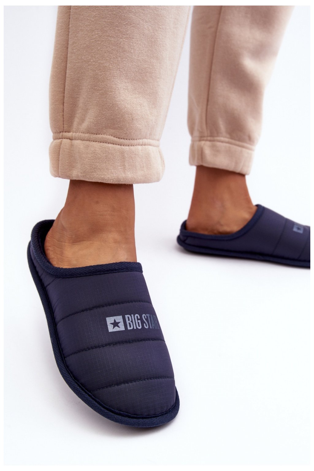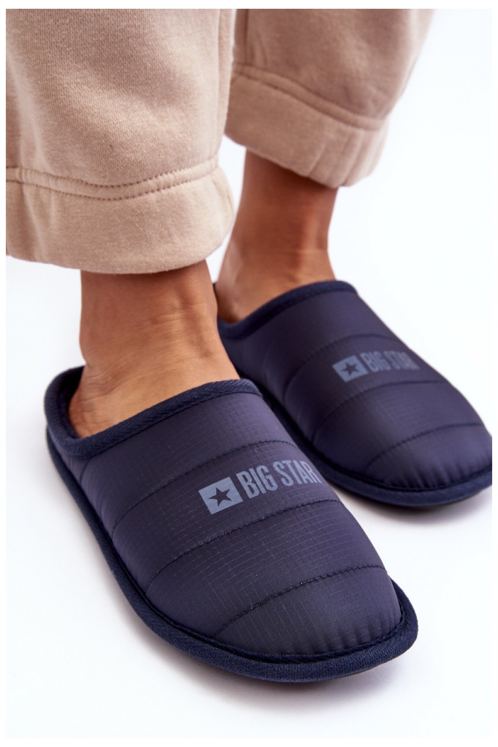 Dámské nazouvací pantofle s širším nártem zajistí pohodlí při používání. Pantofle jsou vyrobeny z textilního materiálu s prošíváním. Logo značky Big Star na svršku. Pantofle jsou uvnitř zateplené měkkou dekou na boty. Osazeny na podrážce z gumového materiálu, která dokonale izoluje od chladné země.