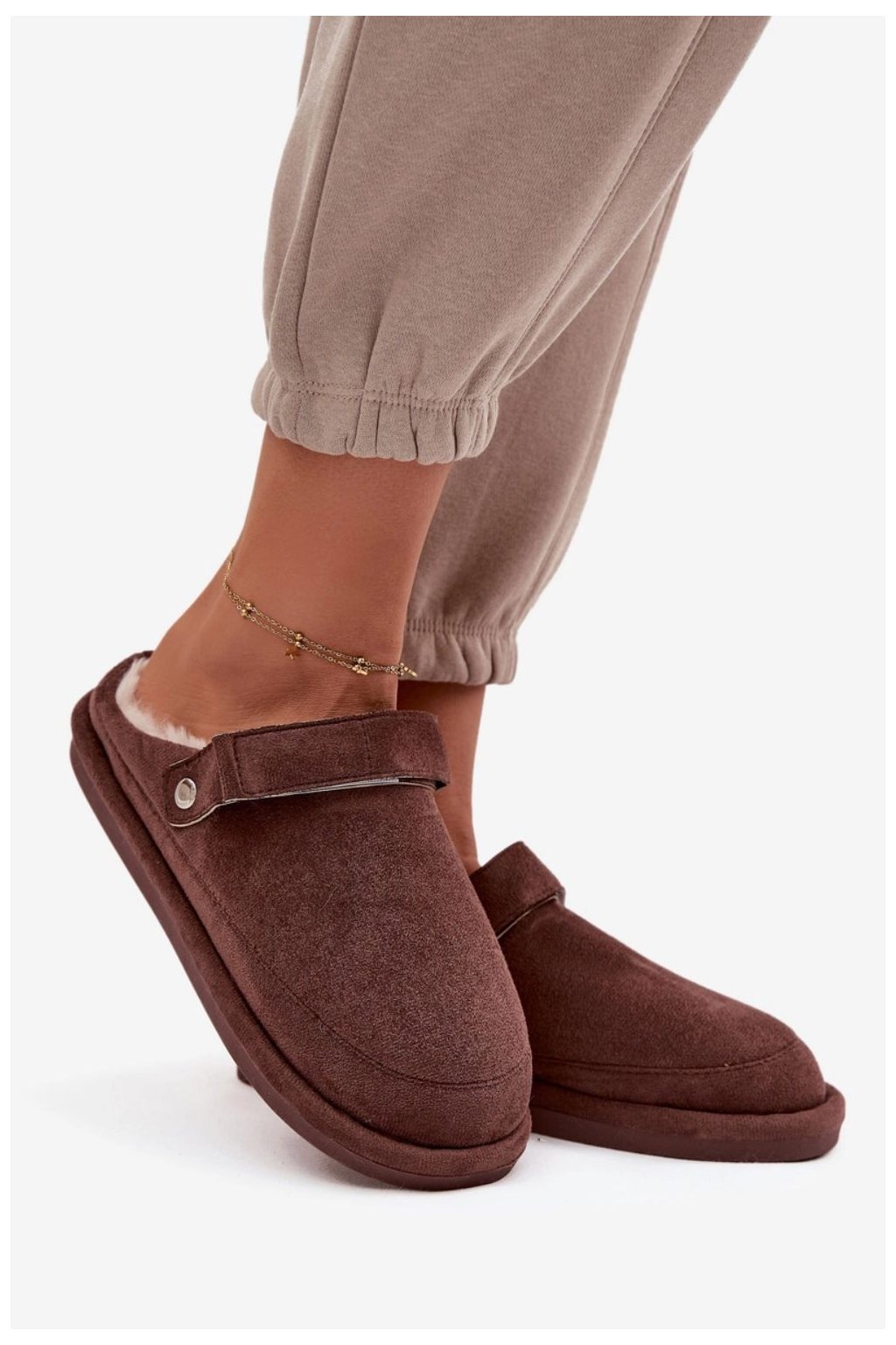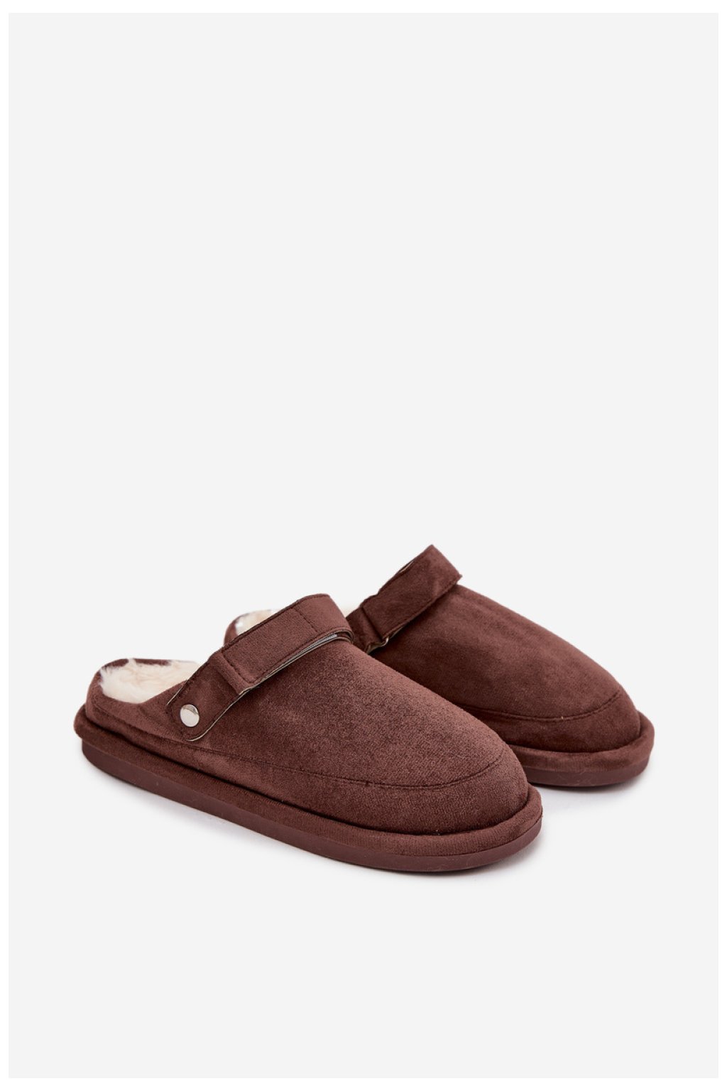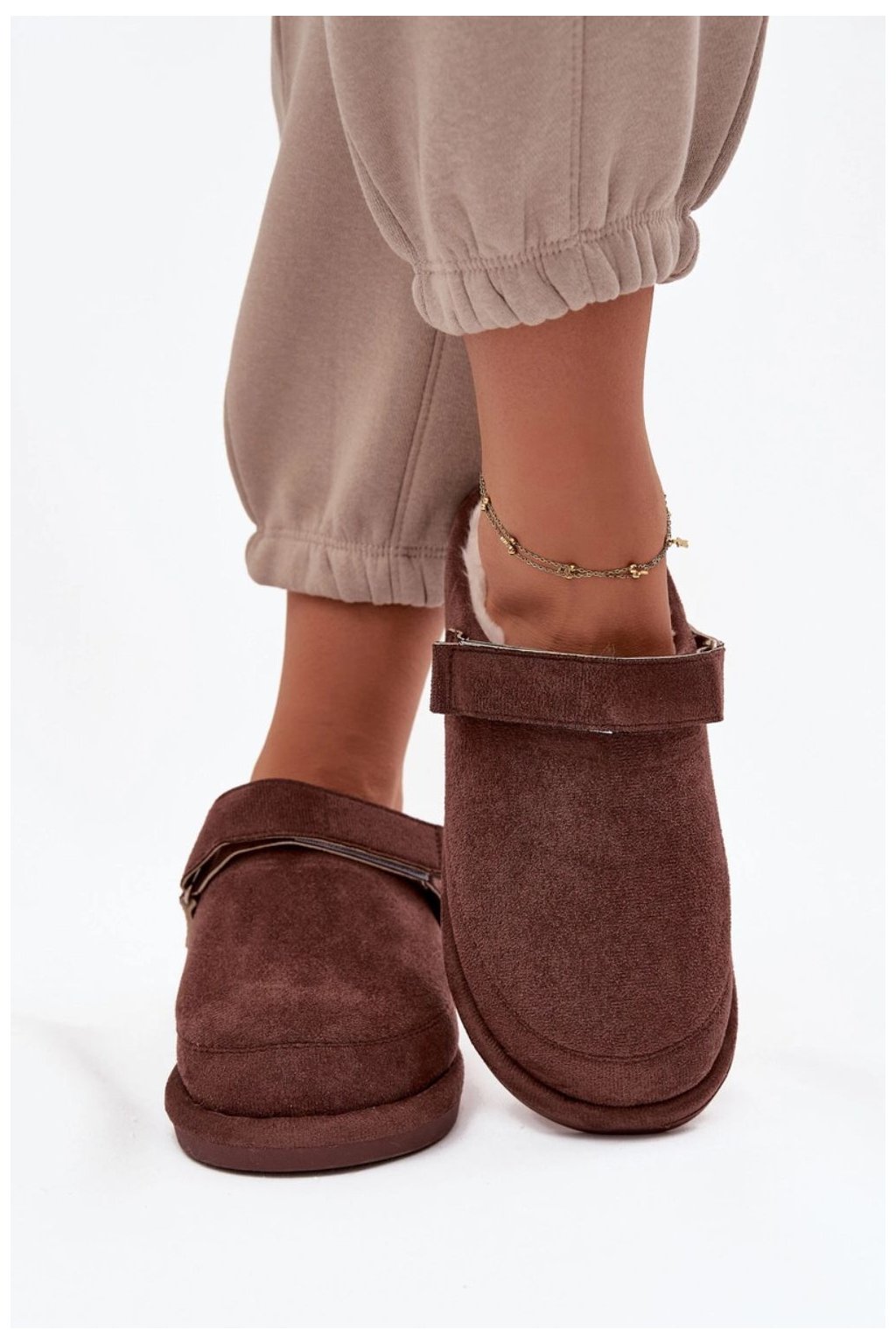 Dámské pantofle vyrobené z měkké ekologické zamszové látky jsou pohodlnou a praktickou volbou na chladné dny. Mají podrážku z pryže, která poskytuje stabilitu a pohodlí při chůzi po domě. Zaoblené, zakryté špičky zdůrazňují klasický vzhled obuvi a pohyblivý pásek se suchým zipem usnadňuje přizpůsobení k noze a přidává funkcionalitu. Vnitřek vyhřívaný měkkým rounem zaručuje teplo a příjemné zabalení, díky čemuž se pantofle skvěle hodí k domácímu užívání.