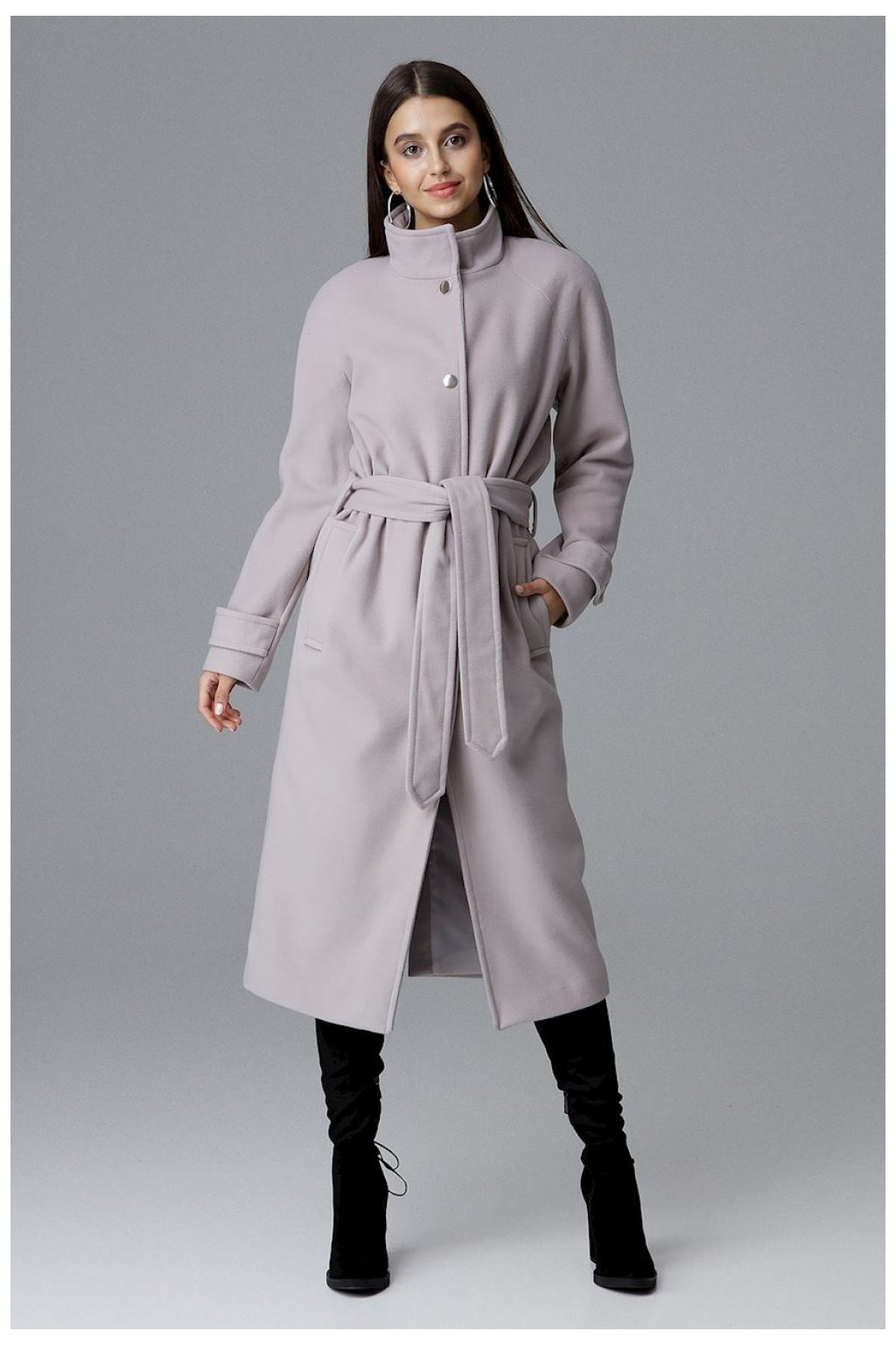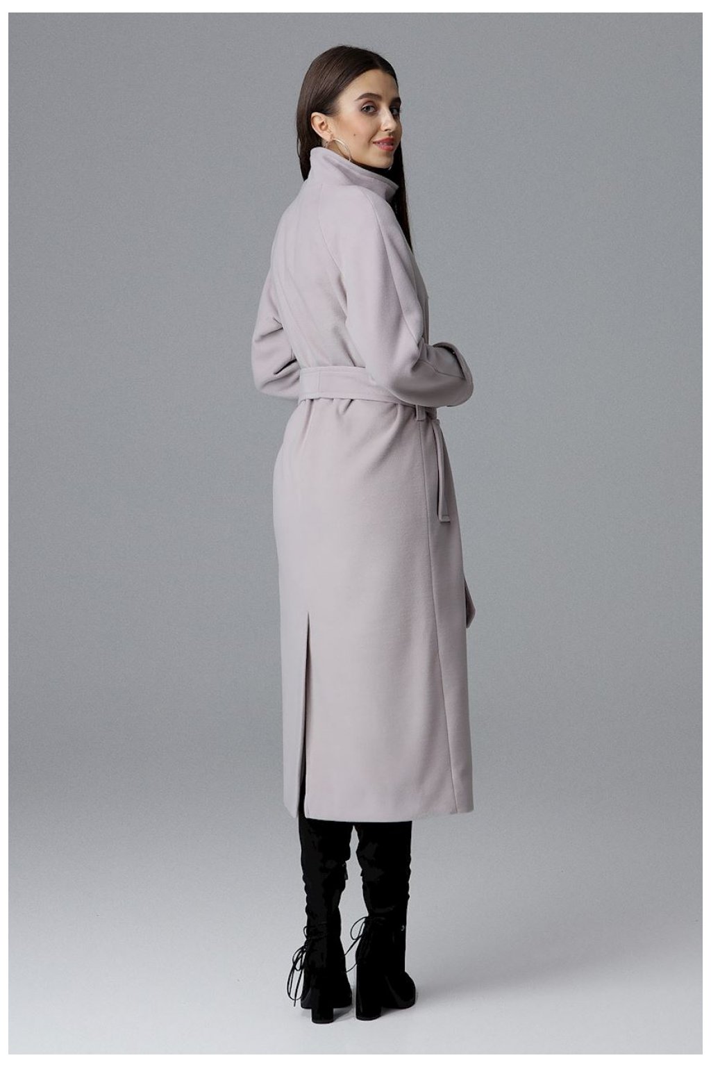 Elegantní jednořadový dlouhý kabát s rozparkem na zádech zvyšuje pohodlí při nošení. Ideální pro moderní ženy, které hledají jednoduché a nadčasové střihy. Model s kapsami, zapíná se na patentky a zavazuje se páskem.