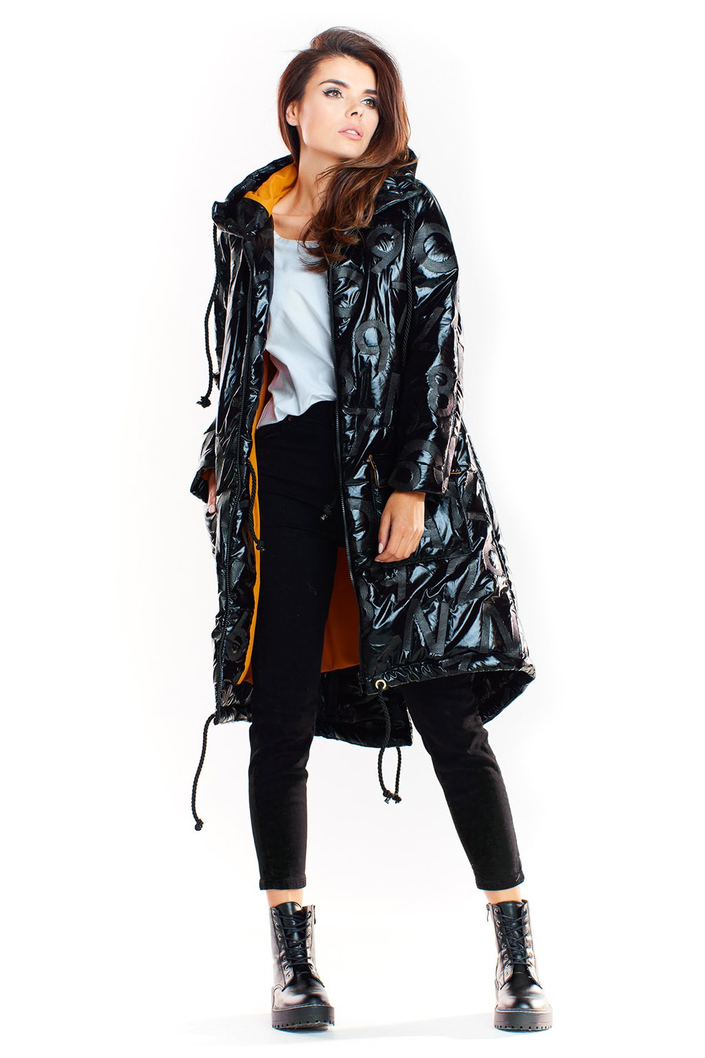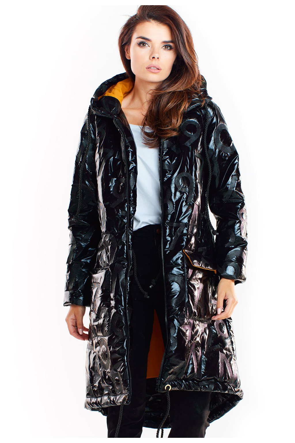 Kabát nadměrné velikosti se zapínáním na patentky. Vyrobeno z mírně lesklé, zateplené tkaniny. Podšívka v kontrastní barvě. Hodí se k mnoha městským stylizacím. K dispozici ve dvou barvách: tmavě černé a stříbrné.Výrobek je navržen a ušit v Polsku. Složení surovin: