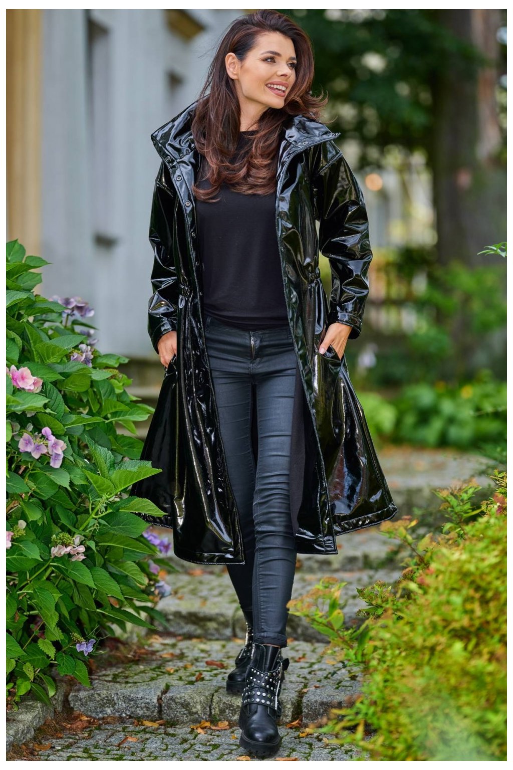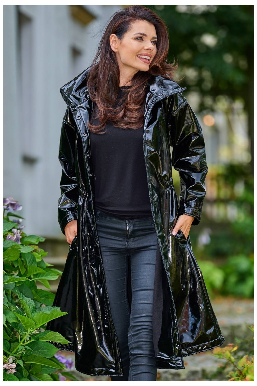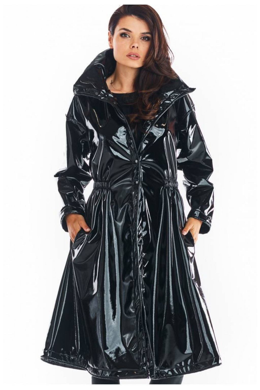 Vinylový kabát s délkou ke kolenům, vysokým límcem a rovnými rukávy. Ve spodní části jsou rozšířené, v pase se stahovací šňůrkou a zapínají se na patentky. Lze použít jako mackintosh. K dispozici ve dvou barvách: černé a červené.