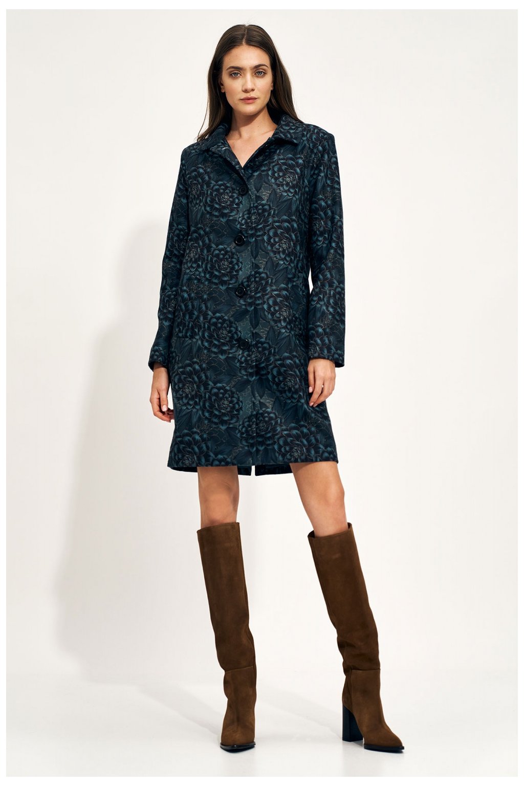 Minimalismus a nadčasový střih! Objevte elegantní kabát s volným střihem a zapínáním na knoflíky. Model má klasický límec, dvě boční kapsy a podšívku.