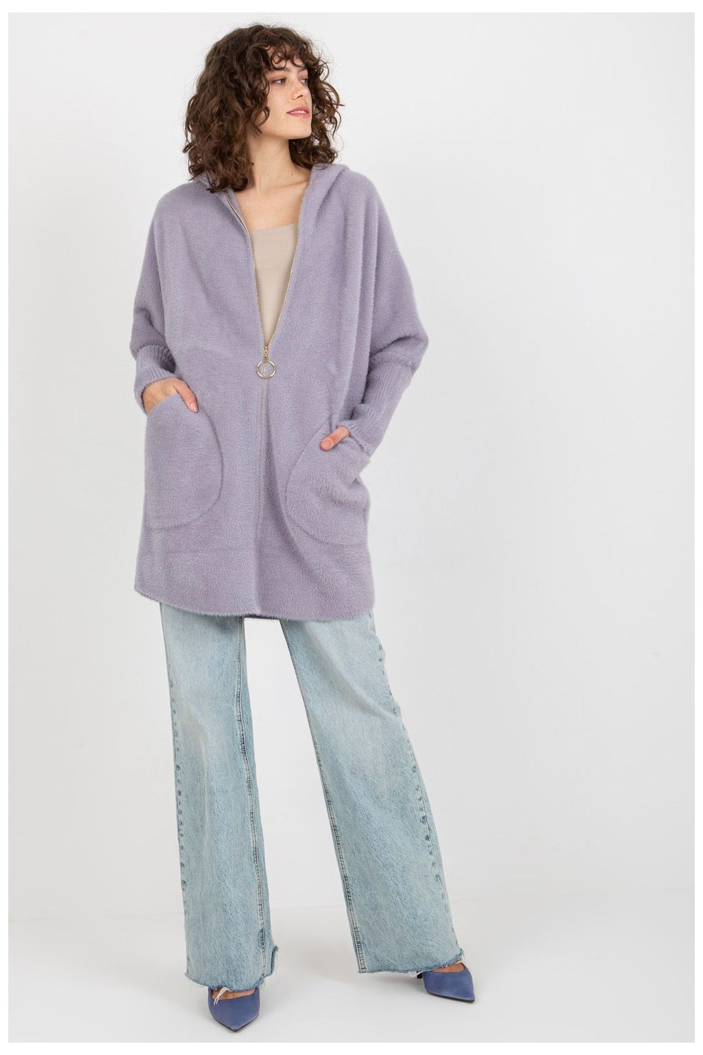 Dámský kabát s dlouhými rukávy a kapucí. Kabát na zip s velkými kapsami na zip.