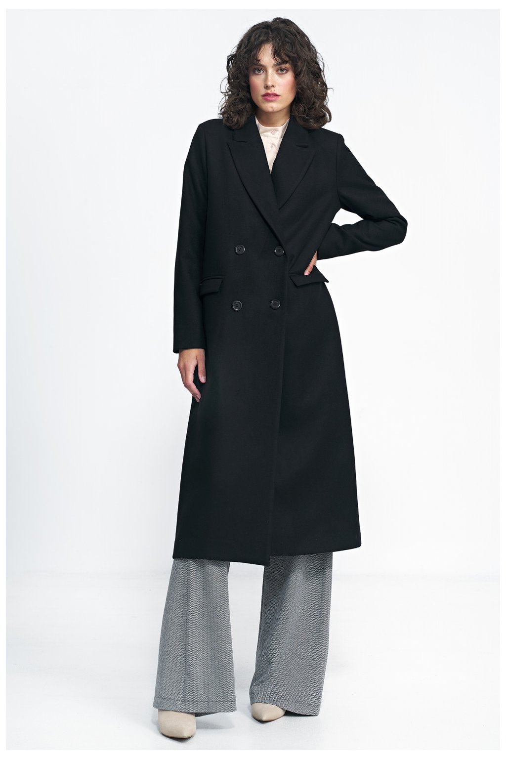 Kabát oversize v černé barvě s dvouřadým zapínáním musíte mít tento podzim! Vypadá skvěle jak pro ležérní styling s džínami, tak na nošení k šatům. Délka ke kolenům je velmi univerzální, elegantní a praktická. Kabát můžete nosit s kozačkami nebo lodičkami.