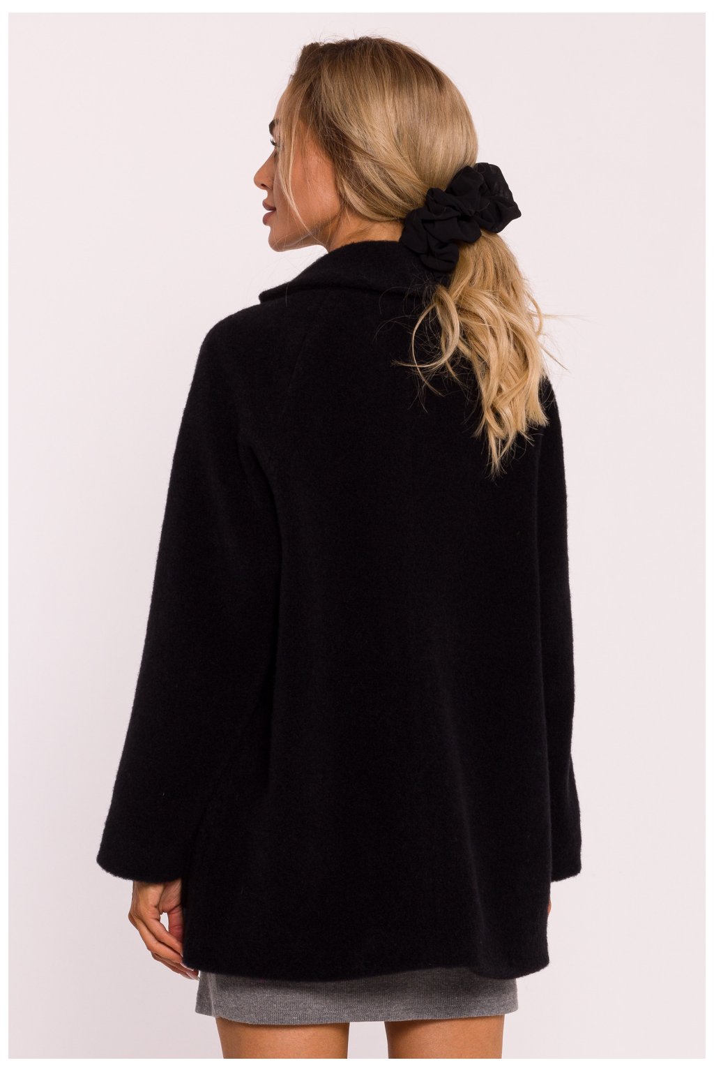 Dámský kabát vyrobený z plyšové pleteniny typu medvěd, charakterizující se příliš velkým střihem, který zajišťuje pohodlí a styl. Zapíná se jedním ozdobným knoflíkem, který dodává eleganci, a je vybaven nástavkovými kapsami na přední straně, které kombinují funkčnost s moderním vzhledem. Kabát je celý podšívaný, což zajišťuje pohodlné nošení. Navržen a ušit v Polsku, představuje ideální volbu na chladnější dny.