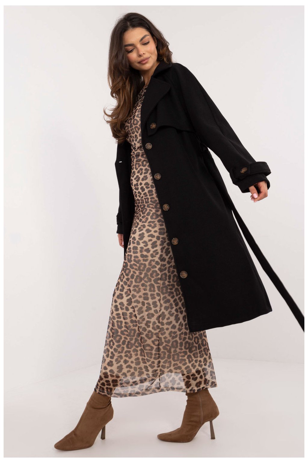 Tento nadčasový trenčkot je must-have v každé ženské skříni. Vyrobený z vysoce kvalitního polyesteru, je odolný a odolný vůči proměnlivým povětrnostním podmínkám. Jednoduchý elegantní střih za koleno dělá kabát vhodným k mnoha stylizacím. Dlouhé rukávy a zapínání na knoflíky zajišťují pohodlí a teplo. Praktické kapsy na stranách pojme nezbytné drobnosti. Přiložený pásek umožňuje zdůraznit pas a přizpůsobit kabát postavě. Tento trenčkot je investicí do vaší garderóby. Jeho nadčasový design a praktická řešení vám zajistí pohodlí a styl ve všech situacích.