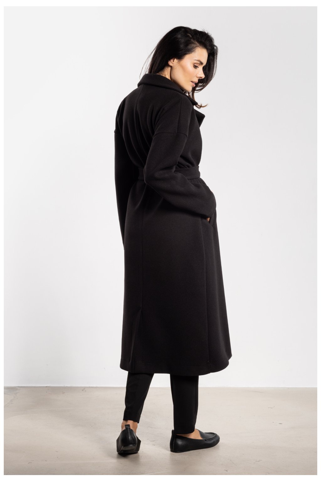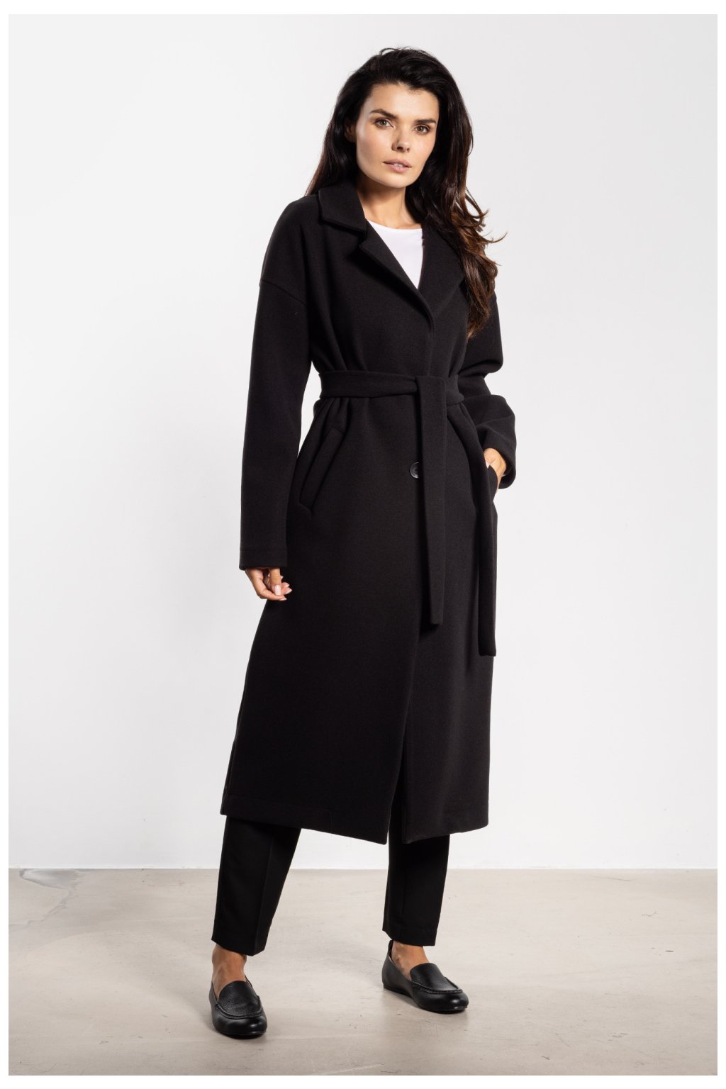 Elegantní dámský kabát s jednoduchým, minimalistickým střihem je must-have v podzimně-zimní garderobě. Midi délka a klasické límce dodávají modelu nadčasový charakter, a přiložený pásek umožňuje zdůraznit pas nebo nosit kabát ve volnějším provedení pro více casual efektu. Jednoduchý střih zajišťuje pohodlí a volnost pohybu, a praktické boční kapsy přidávají funkcionalitu. Model se hodí jak do pracovních stylizací, tak na speciální příležitosti, kombinujíc eleganci s univerzálností.