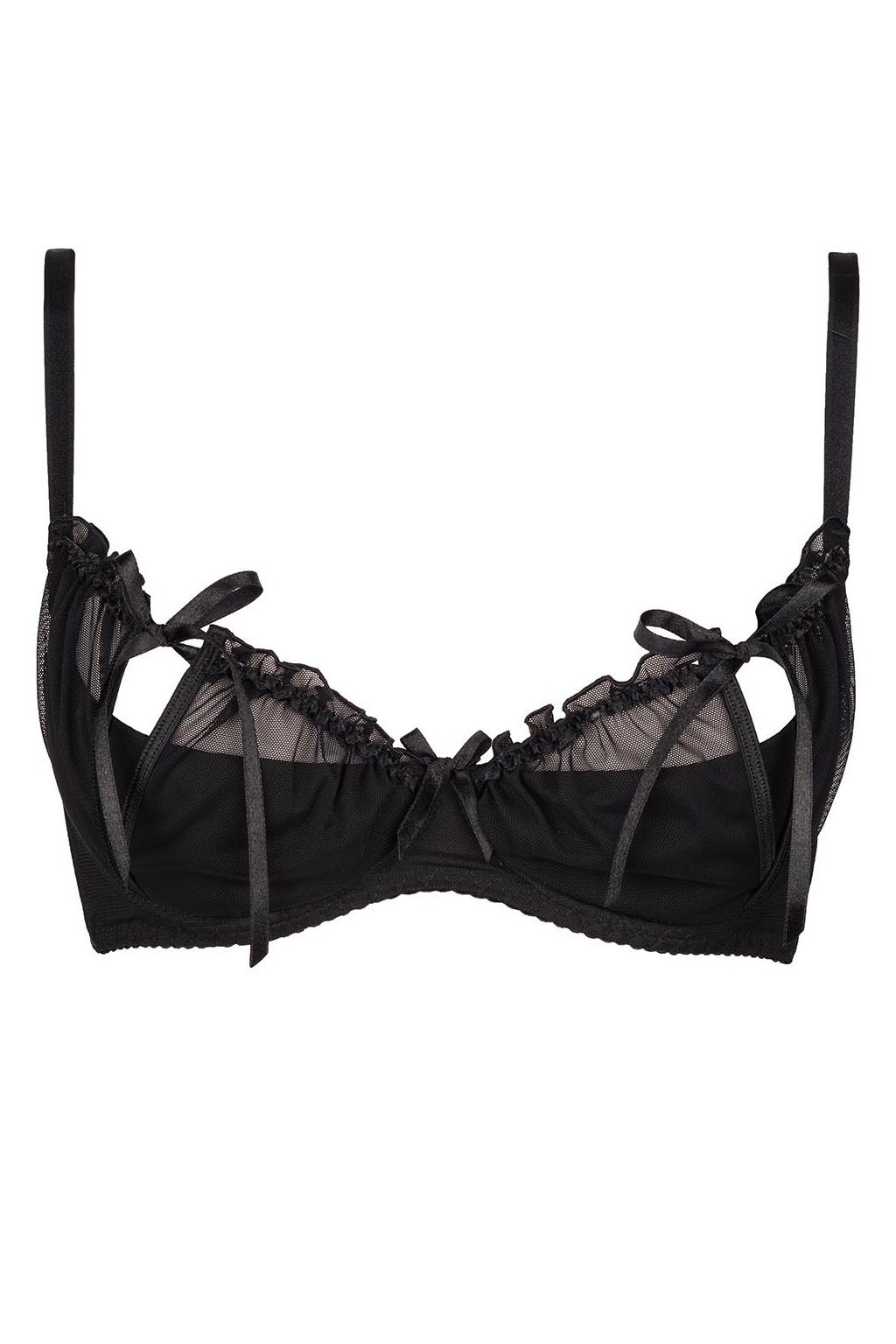Smyslná podprsenka Charbon láká na frivolní volánky a mašličky, zavazuje se saténovou stuhou s malými průstřihy a odhaluje část ňader skrytou pod tylovým závojem. Model má přídavné svislé velrybí kosti stabilizující konstrukci a nastavitelné, neodnímatelné popruhy. Zapínání se dvěma výšivkami. Třístupňová regulace obvodu. Pro kompletní sadu doporučujeme tanga Axami V-6458 a pás V-6452.
