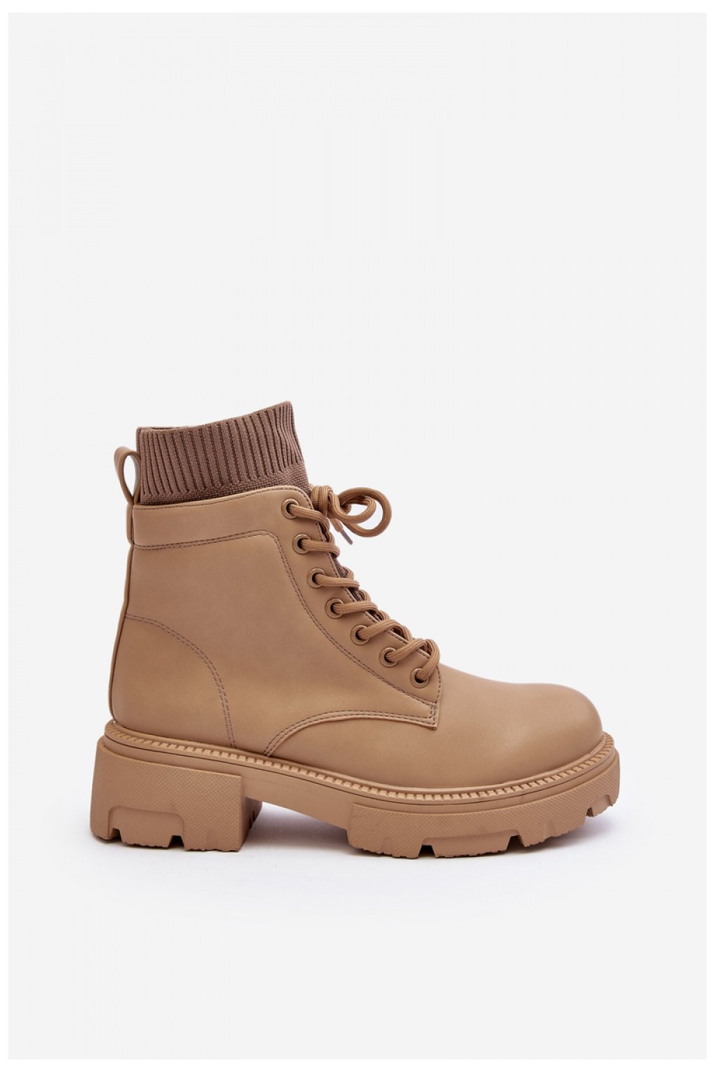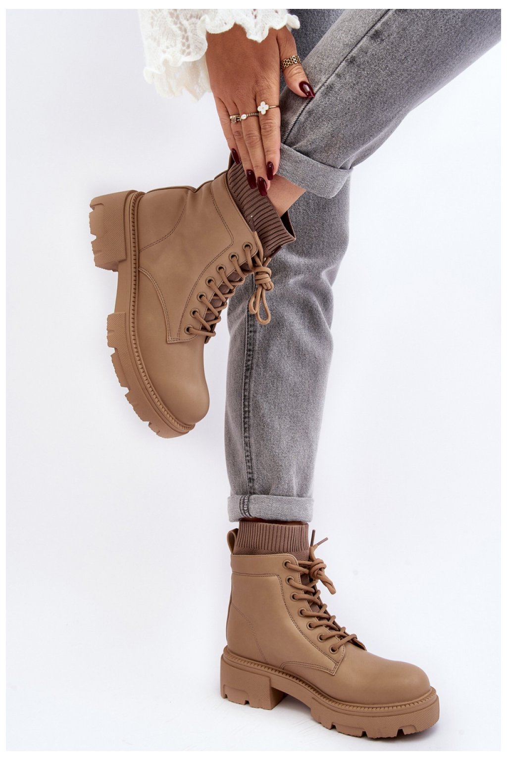Dámské trapery z ekologické kůže. Stojí na masivním, plochém podpatku a platformě. Nazouvací model se svrškem v délce ke kotníkům. Šněrování v přední části. Zaoblená špička. Vyztužený podpatek. Využijte tento klasický model k mnoha podzimně-zimním outfitům!
