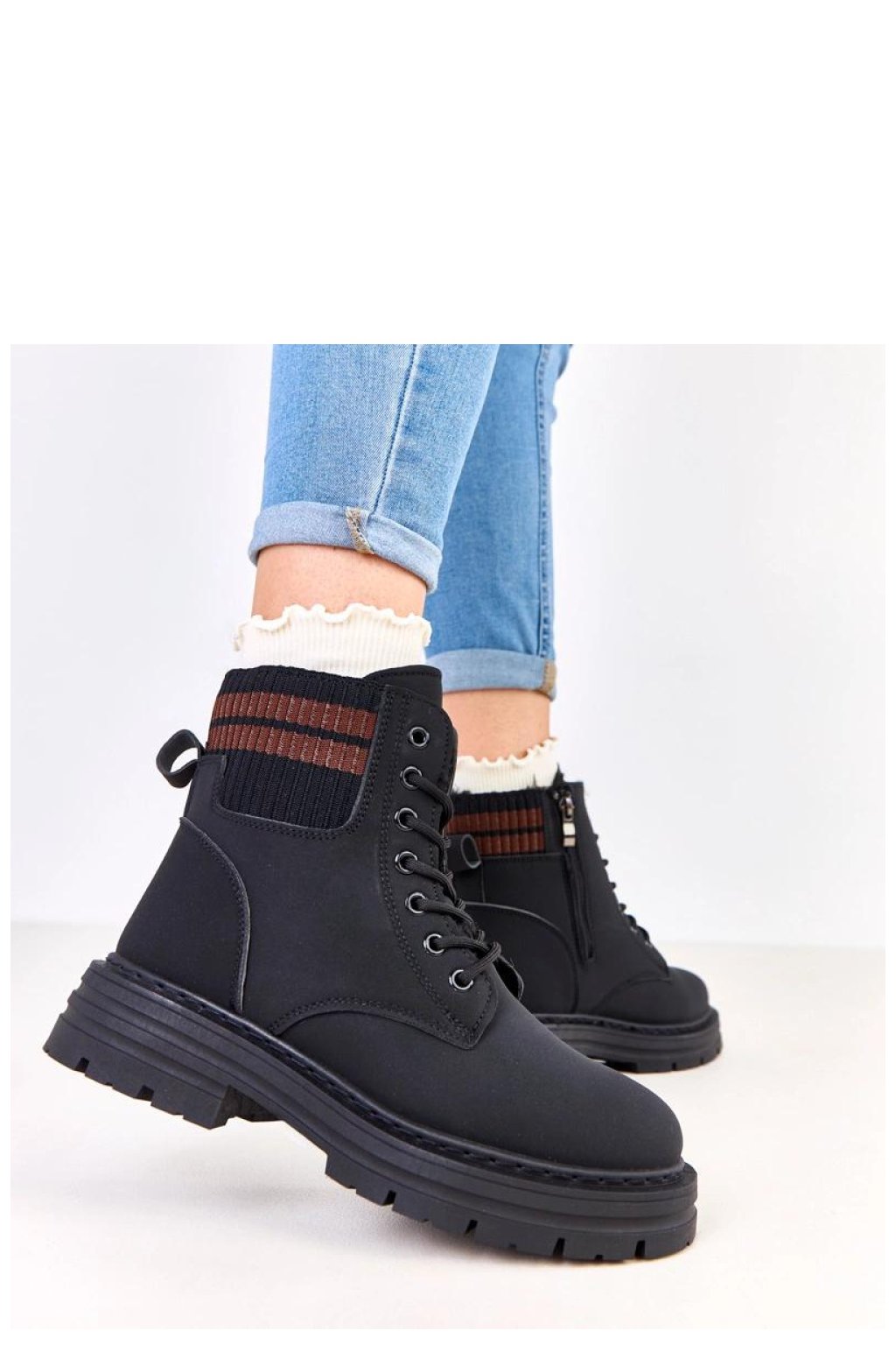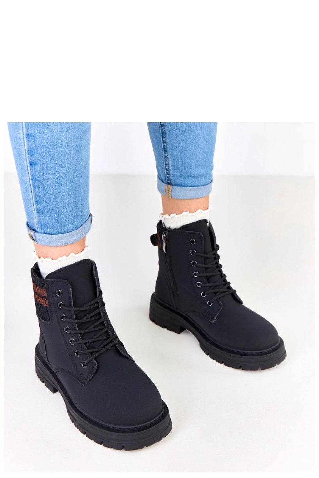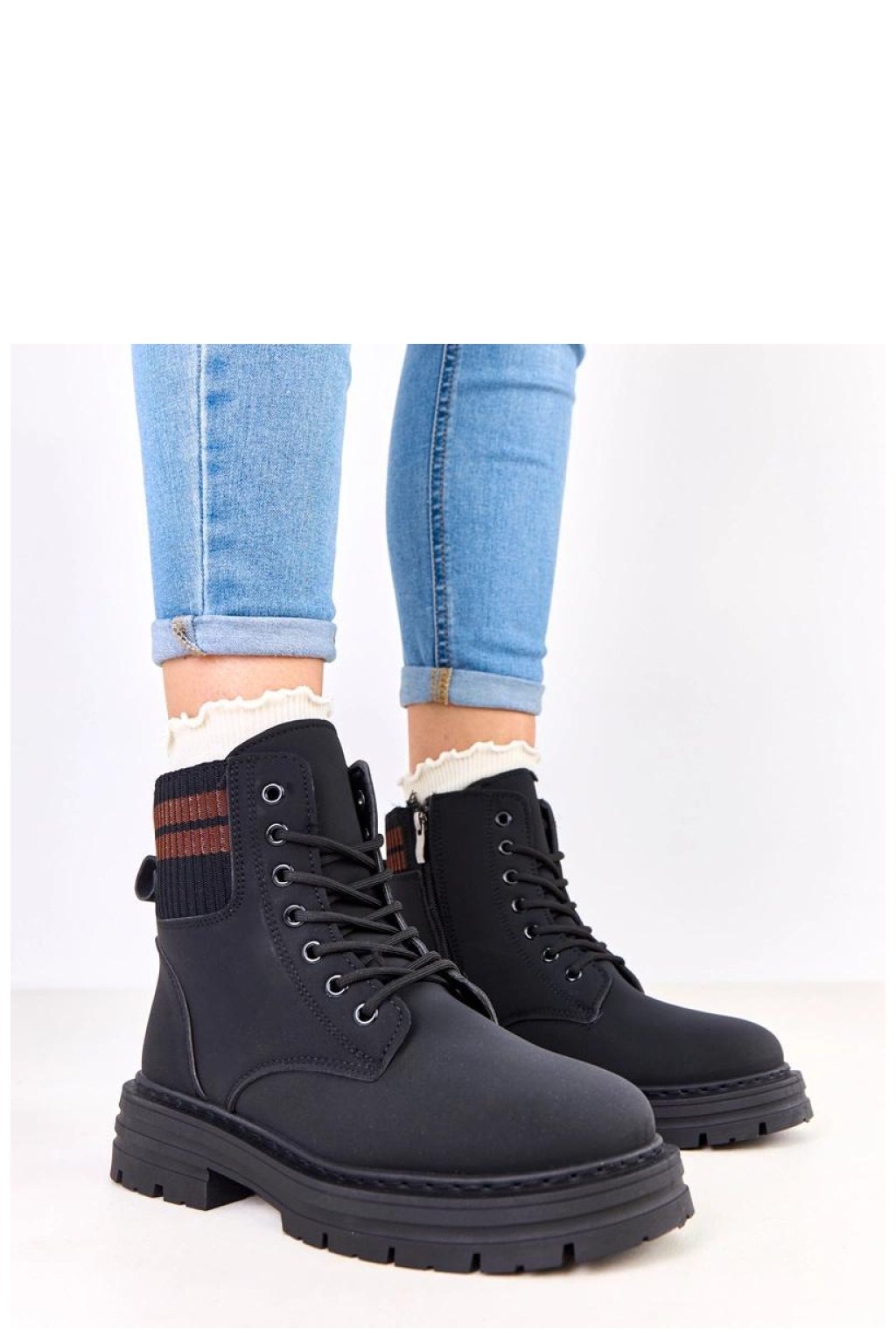 Moderní a pohodlné dámské kozačky s koženým podšívkou jsou ideální volbou na chladné dny. Vyrobené z vysoce kvalitní ekologické kůže, kombinují odolnost s módním vzhledem. Na výšce kotníku je stylový materiálový vložka s kontrastními pruhy, která botám dodává originální, sportovní charakter. Model má kulatou špičku a šněrování umožňuje přizpůsobit obuv noze, zatímco dodatečný zip usnadňuje obouvání a svlékání. Měkké podšívání kožíškem zajišťuje tepelný komfort a pohodlí při každodenním nošení. Kozačky jsou umístěny na stabilním podpatku o výšce 4 cm, který zaručuje jistotu kroku a pohodlí chůze. 13,5 cm vysoký svršek dobře chrání kotník a stélka z umělé hmoty je odolná a snadno se udržuje čistá. Toto spojení praktického pohodlí, módního designu a tepla je ideální pro každodenní, městské stylování v podzimně-zimním období.