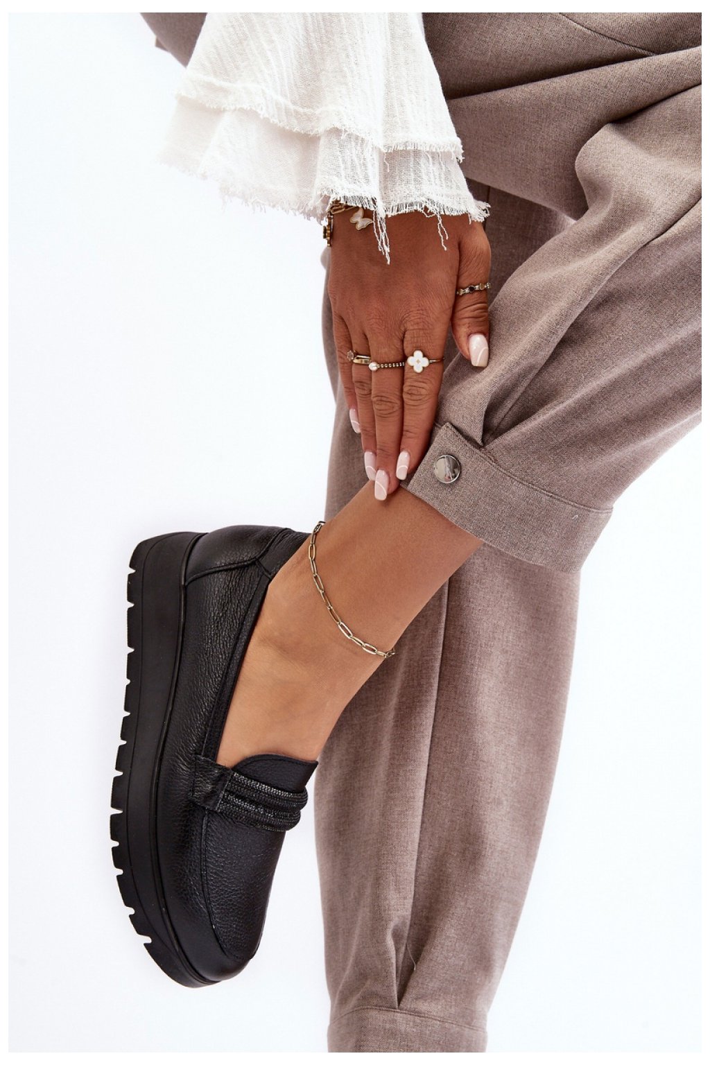 Dámské nazouvací polobotky byly vyrobeny z přírodní kůže. Stojí na masivní platformě. Mají zaoblený nos. Stélka, rovněž z přírodní kůže, zajistí pohodlí při používání. Kromě toho je podpatek u těchto bot vyztužený. Jsou módní, pohodlné a vyrobené s důrazem na detail.