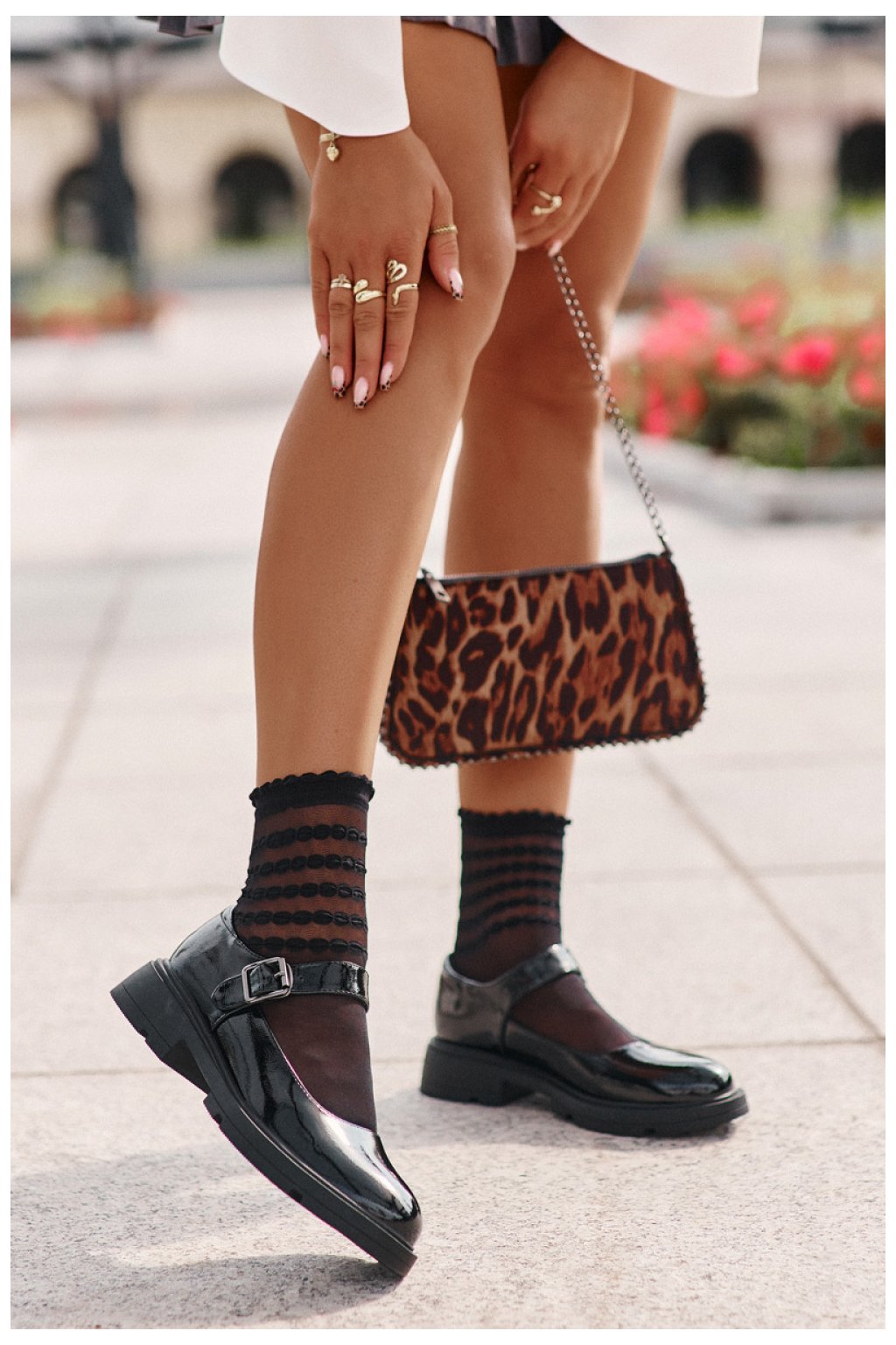 Módní dámské polobotky z ekokůže. Mají nastavitelný pásek s přezkou pro dokonalé přizpůsobení. Zaoblená špička a plochý podpatek zajistí celodenní pohodlí a zároveň dodají stylový akcent každému outfitu.