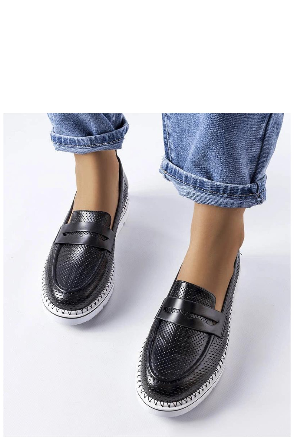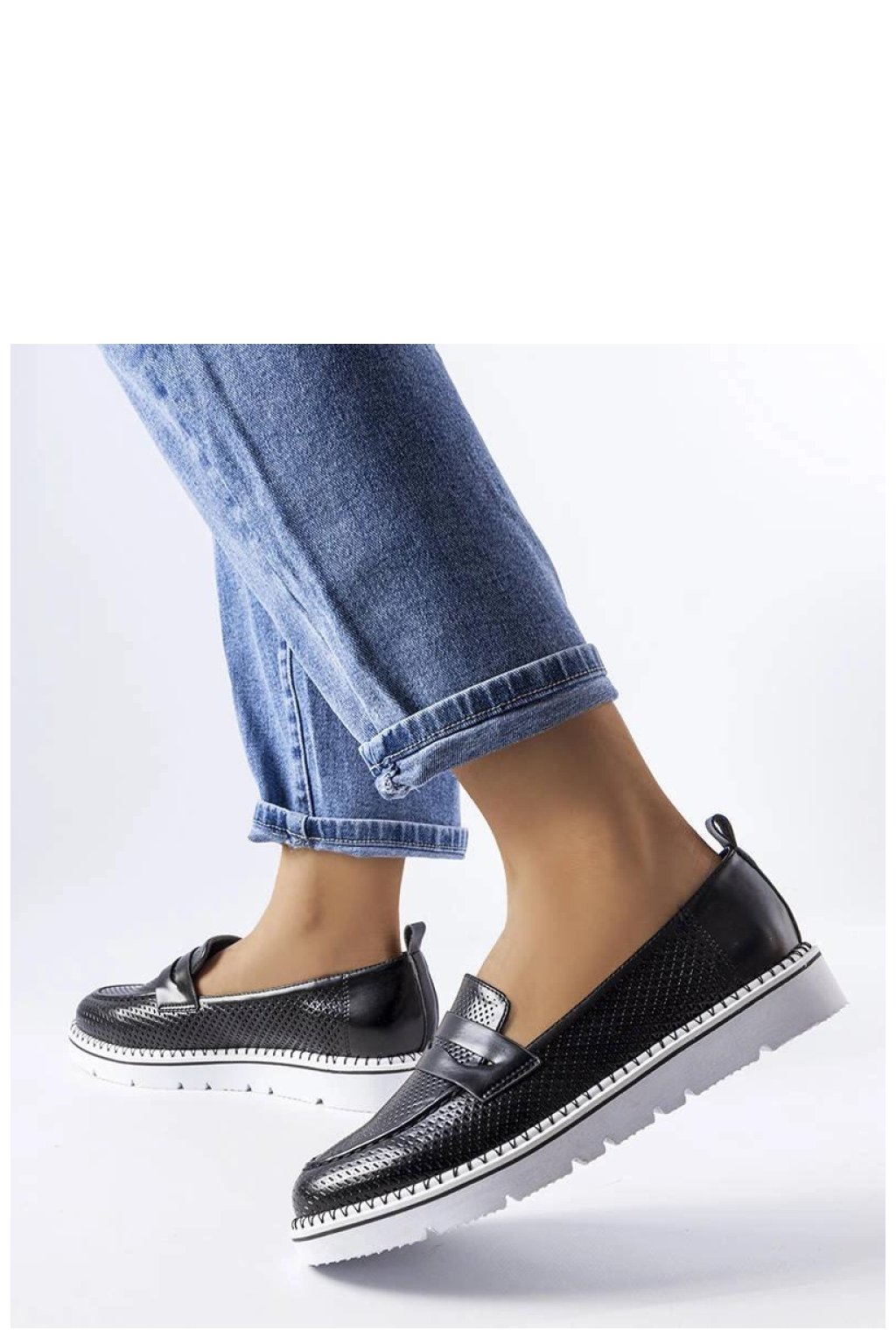 Elegantní polobotky Bloomsburg Sneakersy jsou ideální kombinací stylu a pohodlí. Vyrobené z černé ekologické kůže s perforací, mají kulatou špičku a nízký podpatek. Vnitřek bot je vyložen měkkou vložkou z přírodní kůže, poskytující dodatečný komfort. Zapínání na zasunutí usnadňuje jejich obouvání a bílá gumová podrážka jim dodává moderní vzhled. Skvělé pro každodenní outfit, jak elegantní, tak streetwearový. K dispozici v standardním číslování, doporučujeme vybrat svou běžnou velikost. Ideální na léto, bez dalšího zateplení.