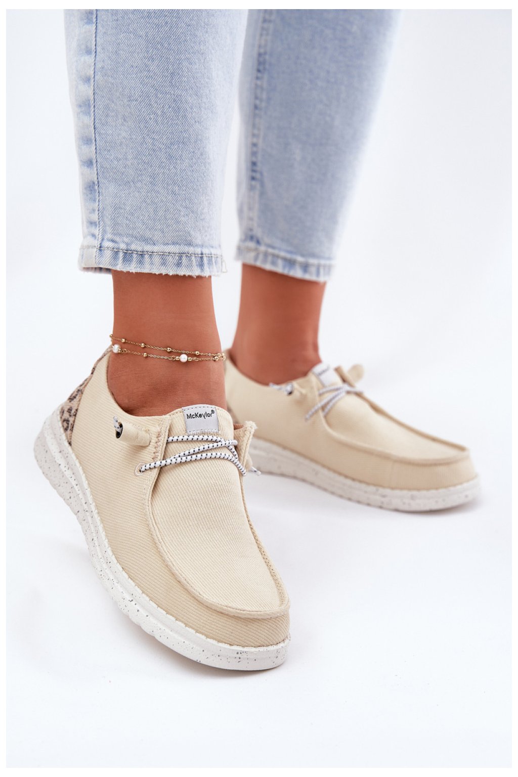 Dámské polobotky vyrobené z textilního materiálu spojují pohodlí a styl. Model je navíc nacvakávací a má gumové šněrování. Zaoblené špičky zaručují pohodlí a měkká vložka zajistí pohodlí po celý den. Ideální pro každodenní outfit, tyto polobotky spojují funkčnost s moderním vzhledem.