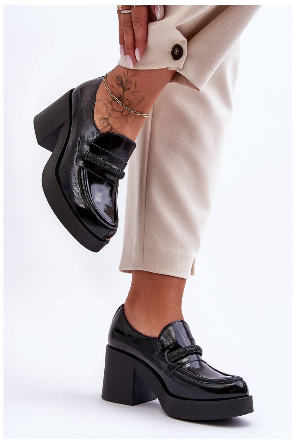Dámské polobotky na podpatku se svrškem z přírodní kůže. Vnitřek byl rovněž potažen přírodní kůží, díky čemuž se velmi pohodlně nosí. Na přední straně se nachází lesklý ornament. Stylový podpatek v podobě širokého jehlového podpatku zajistí stabilitu při každém kroku. Podpatek je polstrovaný. Pod jazykem se navíc nachází šňůrka, díky které se bota dokonale přizpůsobí vaší noze. Při výběru velikosti se prosím řiďte tabulkou velikostí..36-23,5/37-24,5/38-25/39-25,5/40-26/41-26,5cm