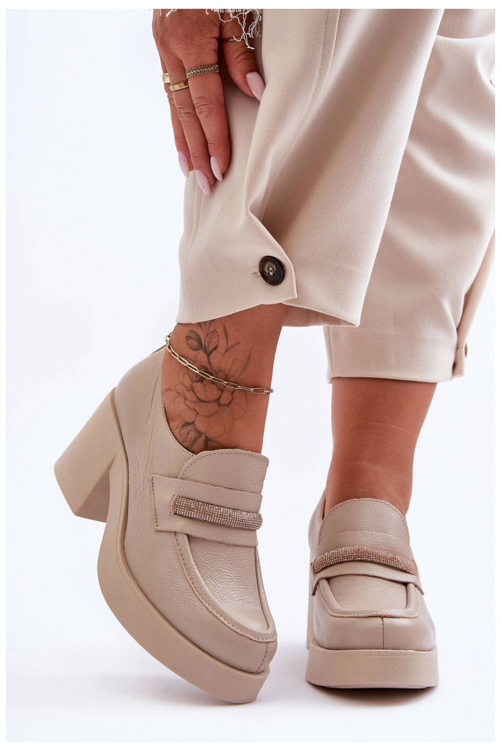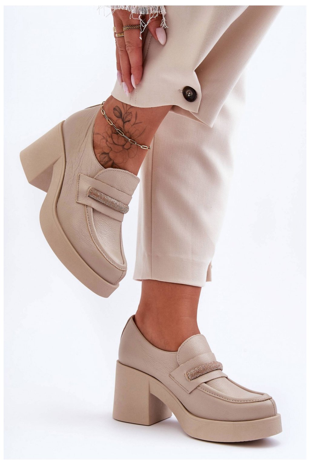 Dámské polobotky na podpatku se svrškem z přírodní kůže. Vnitřek byl rovněž potažen přírodní kůží, díky čemuž se velmi pohodlně nosí. Na přední straně se nachází lesklý ornament. Stylový podpatek v podobě širokého jehlového podpatku zajistí stabilitu při každém kroku. Podpatek je polstrovaný. Pod jazykem se navíc nachází šňůrka, díky které se bota dokonale přizpůsobí vaší noze.