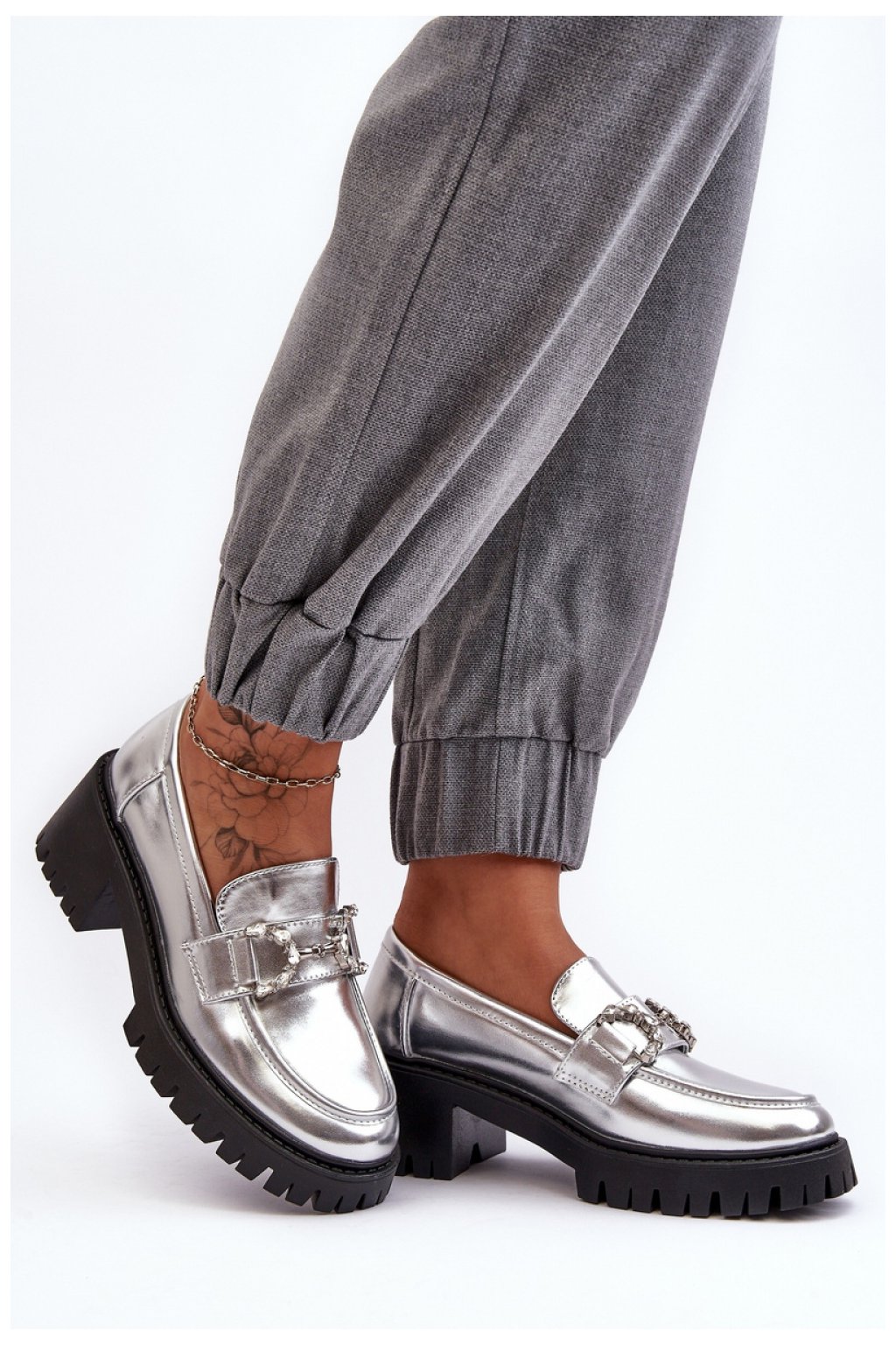Dámské polobotky z ekologické kůže. Stojí na masivním nízkém podpatku a platformě. Šperková ozdoba na předním pásku. Zaoblená špička. Vyztužený podpatek. S tímto modelem můžete vytvořit mnoho skvělých podzimních outfitů!