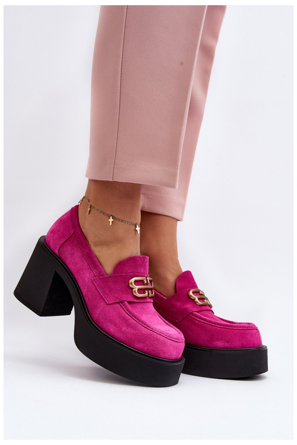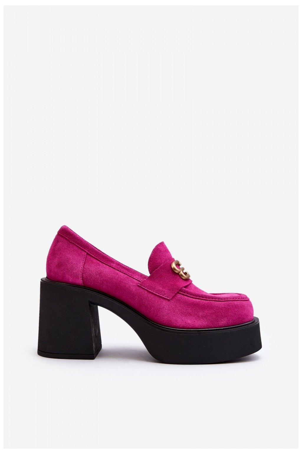 Dámská obuv na vysokém podpatku se svrškem z ekokůže. Osazeny na silné podrážce a podpatku v podobě masivního sloupku. Tento model má zakulacený nos. Kožená stélka zajistí pohodlí při používání. Pásek a ozdoba na přední straně.