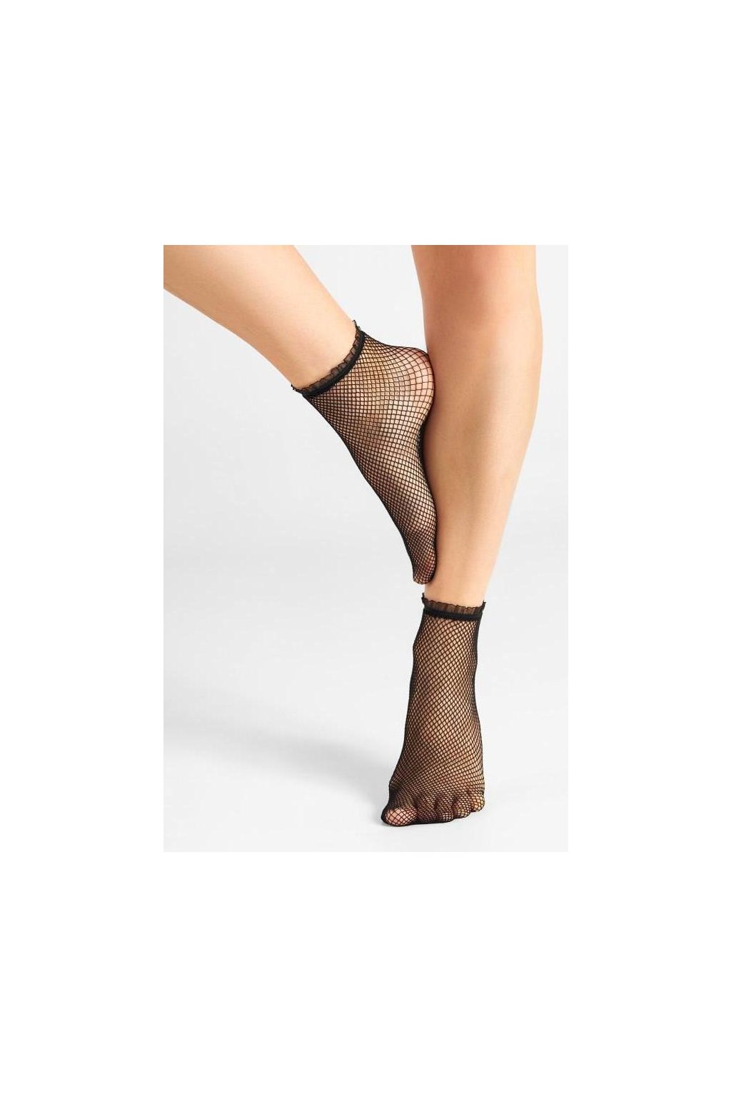 Ažurové kabaretní ponožky s malým očkem. Vyznačují se ozdobnou organzovou krajkou našitou kolem kotníku. Jsou mimořádně pružné a příjemné na nošení.
