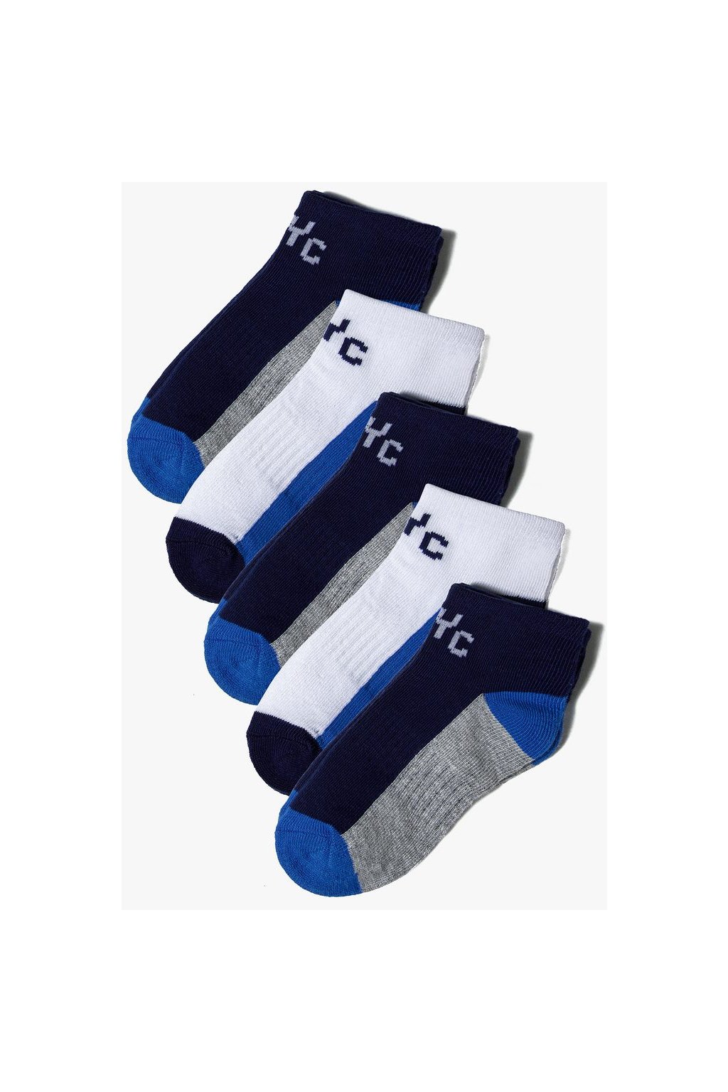 Sada pěti párů chlapeckých sportovních ponožek. Každá ponožka je zakončena příjemným žebrovaným otvorem pro větší pohodlí a bezpečné uchycení a kontrastním barevným detailem paty a špičky.
