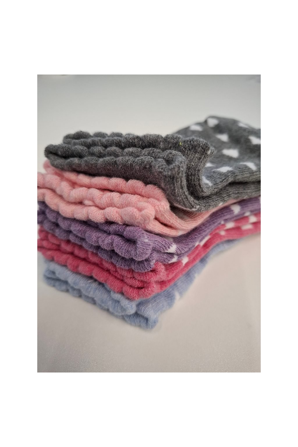 Sada pěti párů dívčích ponožek. Každá ponožka je zakončena příjemným žebrovaným otvorem pro větší pohodlí a bezpečné uchycení a barevným detailem paty a špičky.