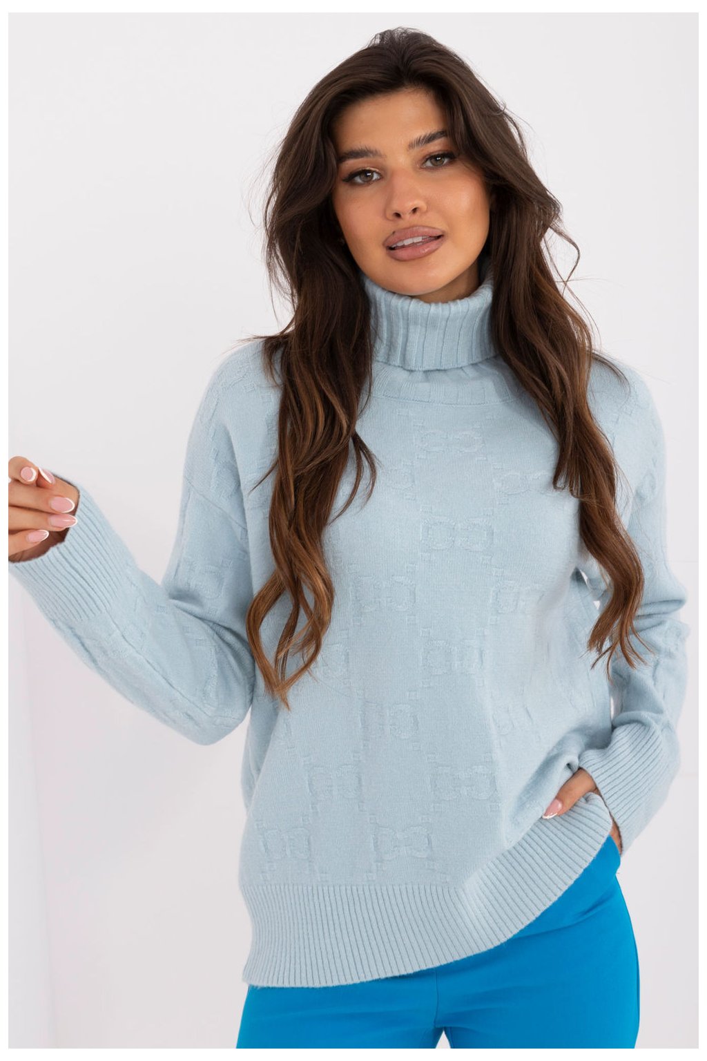Dámský svetr s golfovým límcem, ideální pro každodenní příležitosti v casual stylu. Vyroben z materiálu s různorodou fakturou, co mu dodává výjimečný charakter. Dominantním materiálem je směs akrylu, polyesteru a polyamidu, co zajišťuje trvanlivost a pohodlí nošení. Svetr má standardní délku a dlouhé rukávy, co ho činí univerzálním výběrem na chladnější dny.