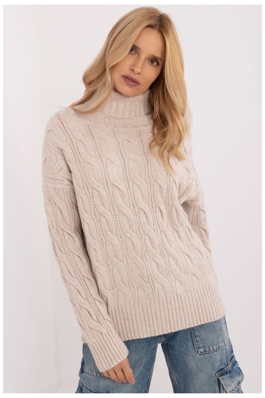 Svetr se golfovým límcem, ideální na každodenní použití v casual stylu. Vyroben z různorodého materiálu, který kombinuje akryl, polyester a polyamid, poskytující pohodlí a odolnost. Svetr má standardní délku a dlouhé rukávy, což ho činí skvělou volbou na chladnější dny.