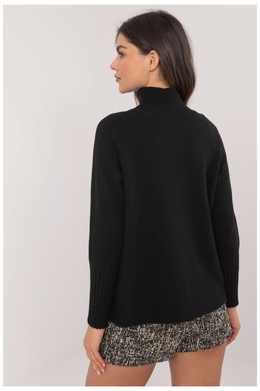 Svetr s golfovým límcem v casual stylu, skvělý na každý den i do práce. Vyrobený z měkké směsi viskózy, nylonu a polyesteru, která poskytuje pohodlí a jemné přizpůsobení postavě. Svetr standardní délky má hladký vzor, což mu dodává univerzální charakter. Dlouhý rukáv zakončený širokým lemem zdůrazňuje elegantní a zároveň uvolněný styl. Golfový límec poskytuje teplo a je ideální volbou na chladnější dny. Jedná se o všestranný kousek oblečení, který skvěle ladí jak s kalhotami, tak s sukni, což z něj činí stylovou volbu na různé příležitosti.