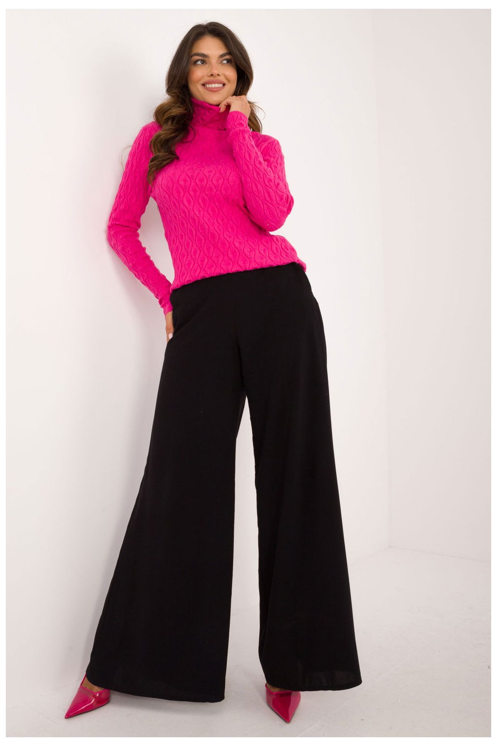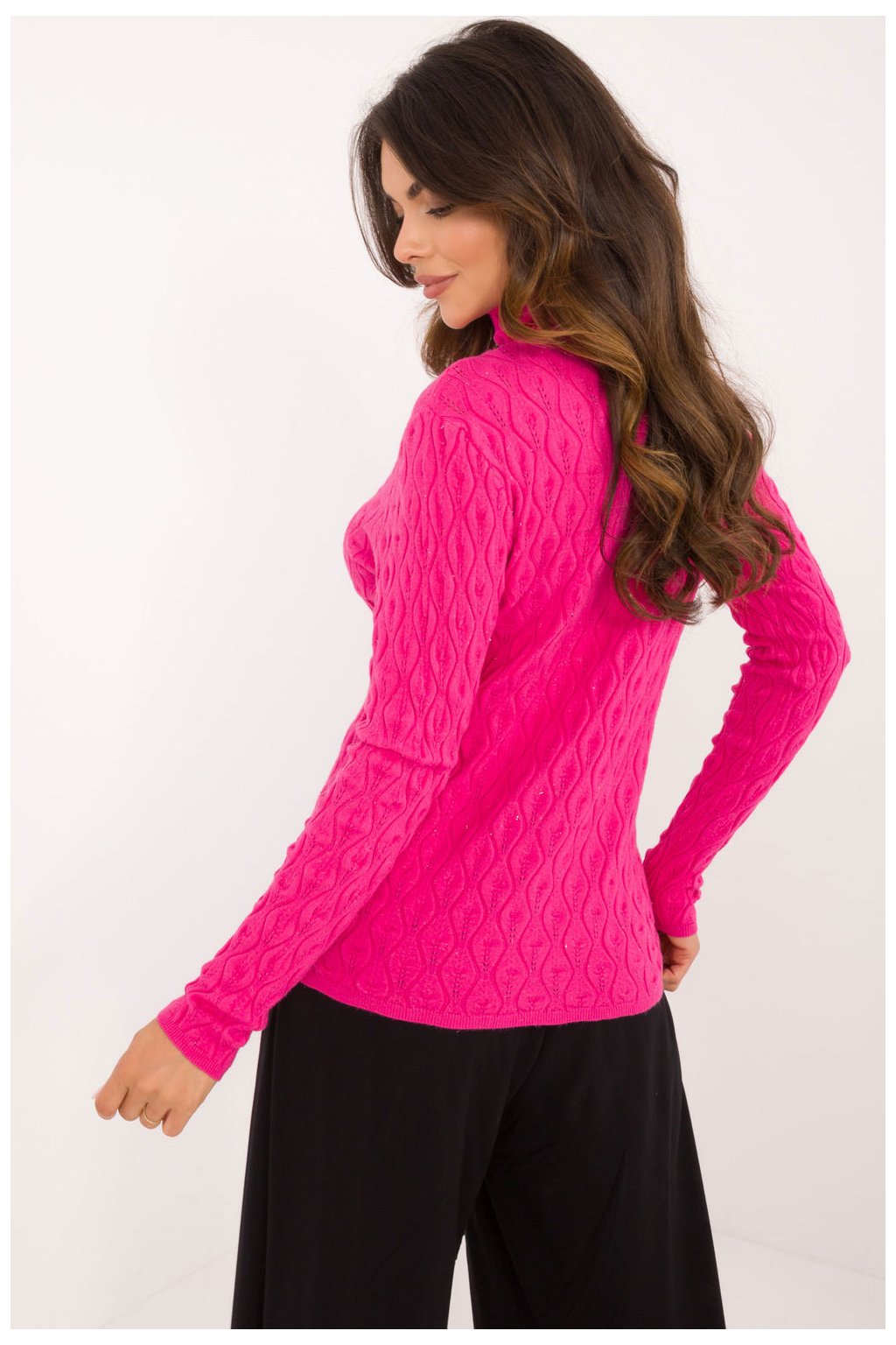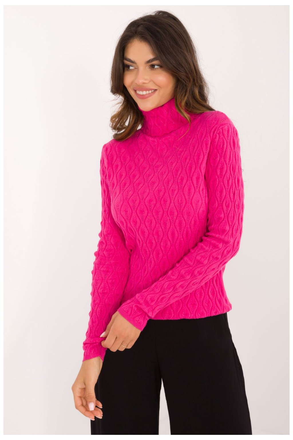 Ležérní svetr s rolákem a jedinečným prolamovaným vzorem, ideální pro každodenní nošení i do práce. Je vyroben z měkké viskózy s přídavky pro pohodlné nošení a decentní střih. Standardní délka a dlouhé rukávy z něj dělají univerzální kousek šatníku, zatímco jemná lesklá nit vetkaná do látky dodává elegantní nádech. Svetr bez zapínání má minimalistický střih, který lze snadno sladit s různými styly a dodat mu nádech elegance a jedinečnosti.