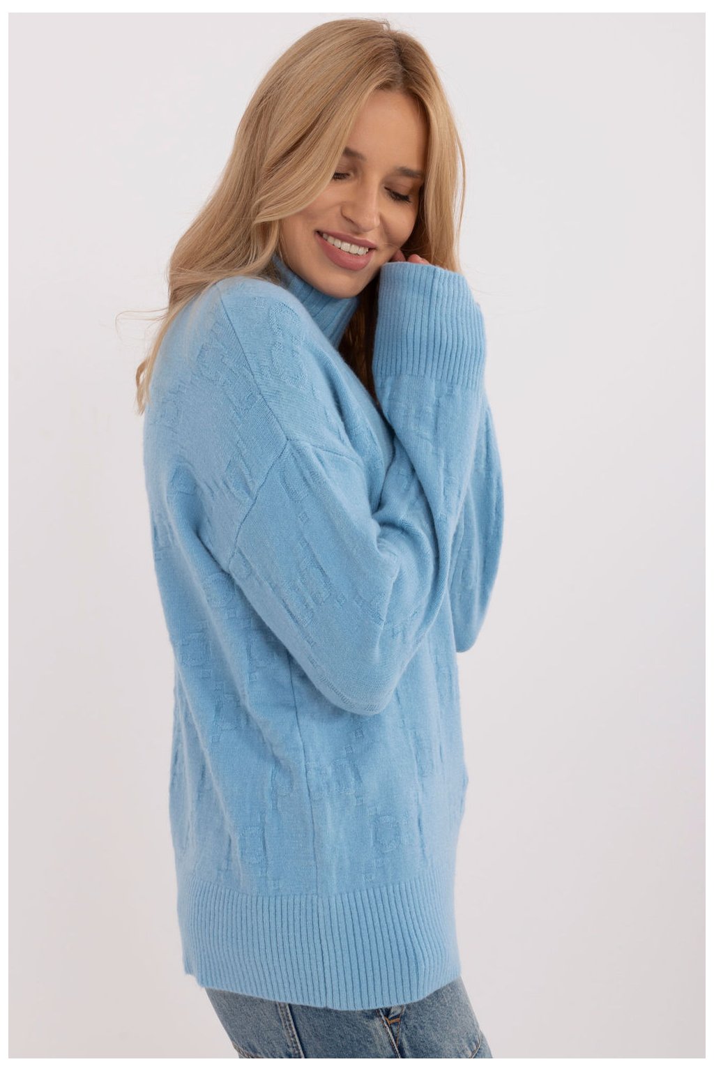 Dámský golfový svetr, ideální pro každodenní příležitosti ve stylu casual. Vyrobený z materiálu s různorodou texturou, co mu dodává jedinečný charakter. Hlavním materiálem je směs akrylu, polyesteru a polyamidu, co zaručuje trvanlivost a pohodlí nošení. Svetr má standardní délku a dlouhé rukávy, co ho činí univerzální volbou na chladnější dny.