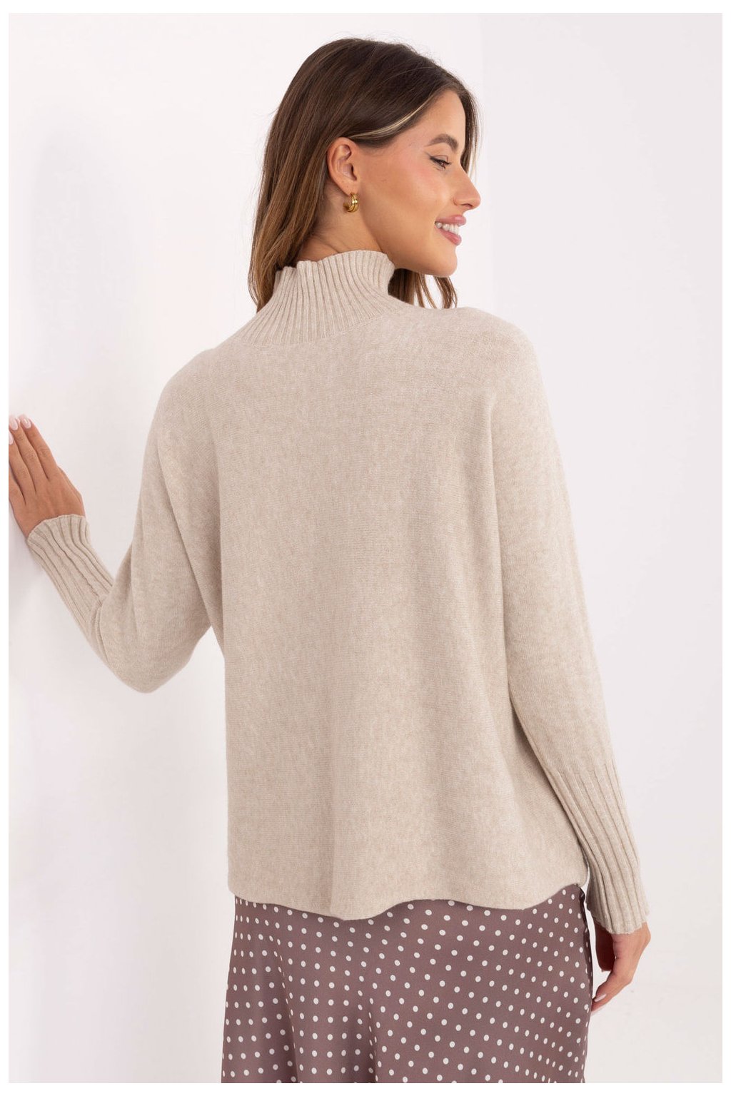 Klasický dámský svetr s golfovým límcem, držený v casual stylu, je must-have v každém šatníku. Vyrobený z vysoké kvality směsi viskózy, polyamidu a polyesteru, je měkký, příjemný na dotek a pohodlný na nošení po celý den. Model má standardní délku a dlouhé rukávy zakončené žebrovanými lemy, co mu dodává estetický vzhled a zajistí dobré padnutí. Hladký vzor dělá svetr univerzálním a snadno stylizovatelným. Ideální na každý den i do práce, skvěle se kombinuje jak s kalhotami, tak s sukní, vytvářejíc elegantní, ale volný look.