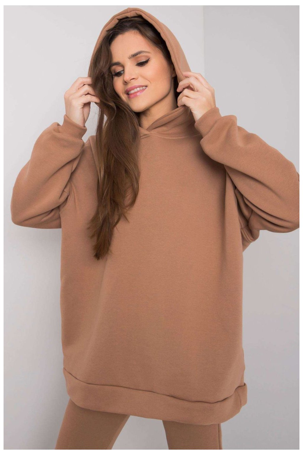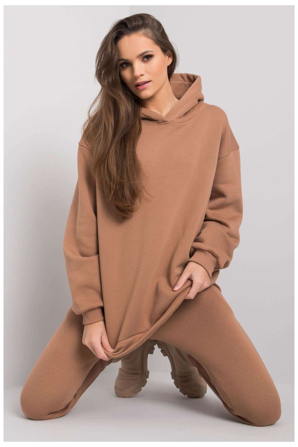 Sada se skládá z mikiny a tepláků. Mikina s kapucí a kapsami. Kalhoty rovného střihu.